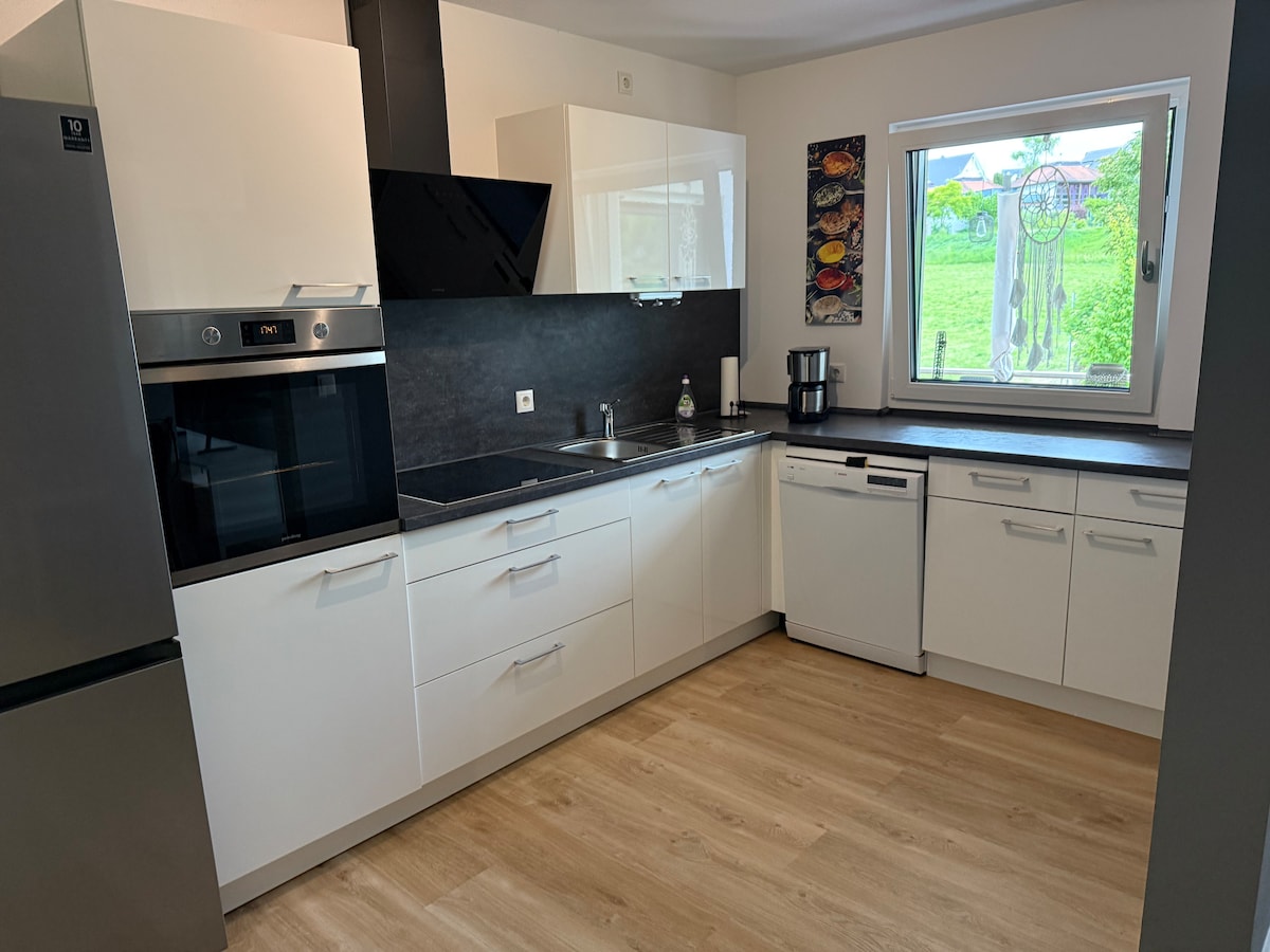 Maaliwalas na 120 sqm na apartment sa unang palapag na may magarang kagamitan Walang susi na access Aircon Indoor na fireplace Mga sahig na gawa sa matigas na kahoy Kumpleto ang kagamitan sa kusina 2 x ganap na awtomatikong coffee machine XXL na higaan 200x200 na de - kuryente Napakalaking sala na puwedeng gawing higaan mga awtomatikong blind Sunroom 100 Mbit Internet Ligtas Terrace na may kusina sa labas Sa labas ng Marktheidenfeld 200 metro mula sa pangunahing daanan ng bisikleta Opsyon sa pag-charge gamit ang wallbox na hanggang 22 kW €0.49/kW Pagpapa-upa ng mountain bike 10€ kada bisikleta/kada araw