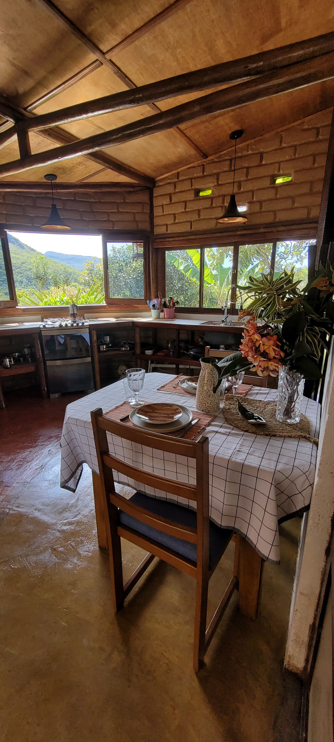 Discover the charm of "Chez Nu, in Vale do Capão, an eco-friendly and authentic chalet built with adobe, reforested eucalyptus, and a traditional cement floor. Located in the peaceful Sítio Rodas, just 12 minutes' walk from the village, the chalet offers comfort with a queen bed, spacious kitchen, and stunning mountain views. Close to the famous Rio Preto waterfall and the "represa", it's the perfect retreat to relax. Welcoming hosts ensure an unforgettable experience!