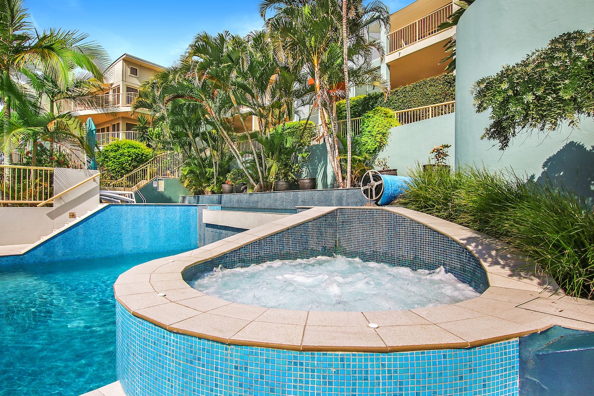 Ang naka - istilong dalawang silid - tulugan na dalawang banyo na apartment na ito sa Level 2 ay may balkonahe kung saan matatanaw ang mga tropikal na hardin. Dalawang minutong lakad lang papunta sa beach, may pool at spa din ang complex. Maluwag ang apartment na may ensuite mula sa master bedroom at kumpletong kusina na may lahat ng mod cons, labahan at linen at amenidad na may grado sa hotel. Dalhin lang ang iyong sarili at ang iyong maleta para sa isang beach weekend.