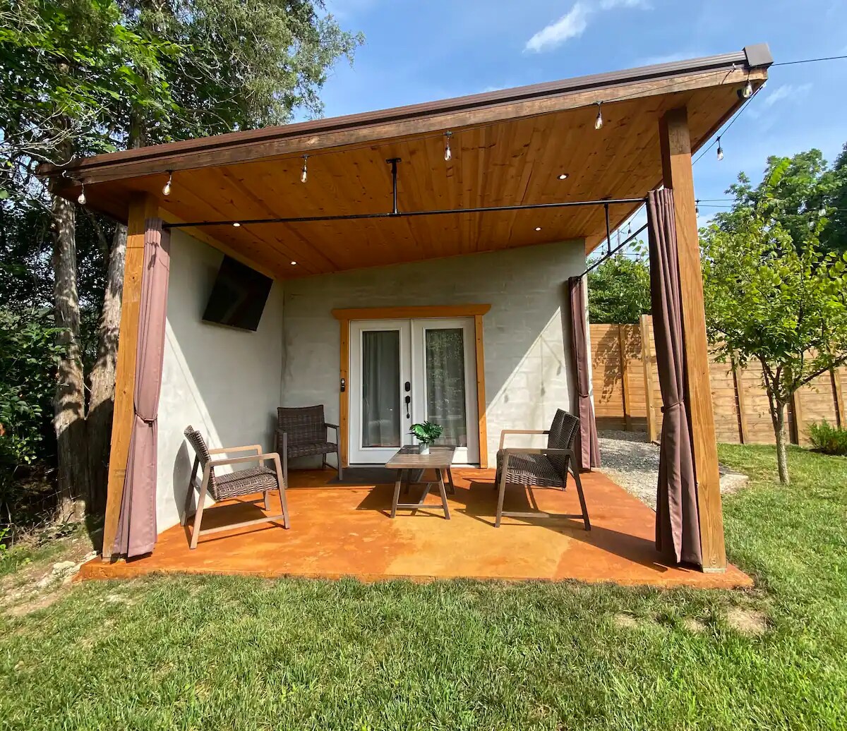 Maraming espasyo at privacy sa cottage na ito na tanaw ang mga bukid at lawa. Umupo at magrelaks habang pinagmamasdan ang mga kabayo at kambing. Matatagpuan ilang minuto ang layo mula sa Oak Ridge/Clinton/Knoxville. Ang Melton Hill lake ay may mga panlabas na aktibidad, restaurant at magandang walking trail at 10 minuto ang layo. 23 minuto ang layo ng University of TN at 13 minuto ang Oak Ridge. Ang 16’ ceilings ay gumagawa ng 480 sq. ft. space na ito pakiramdam napakalaking. Ang Kusina ay may full size na refrigerator, keurig, microwave at convection oven combo.