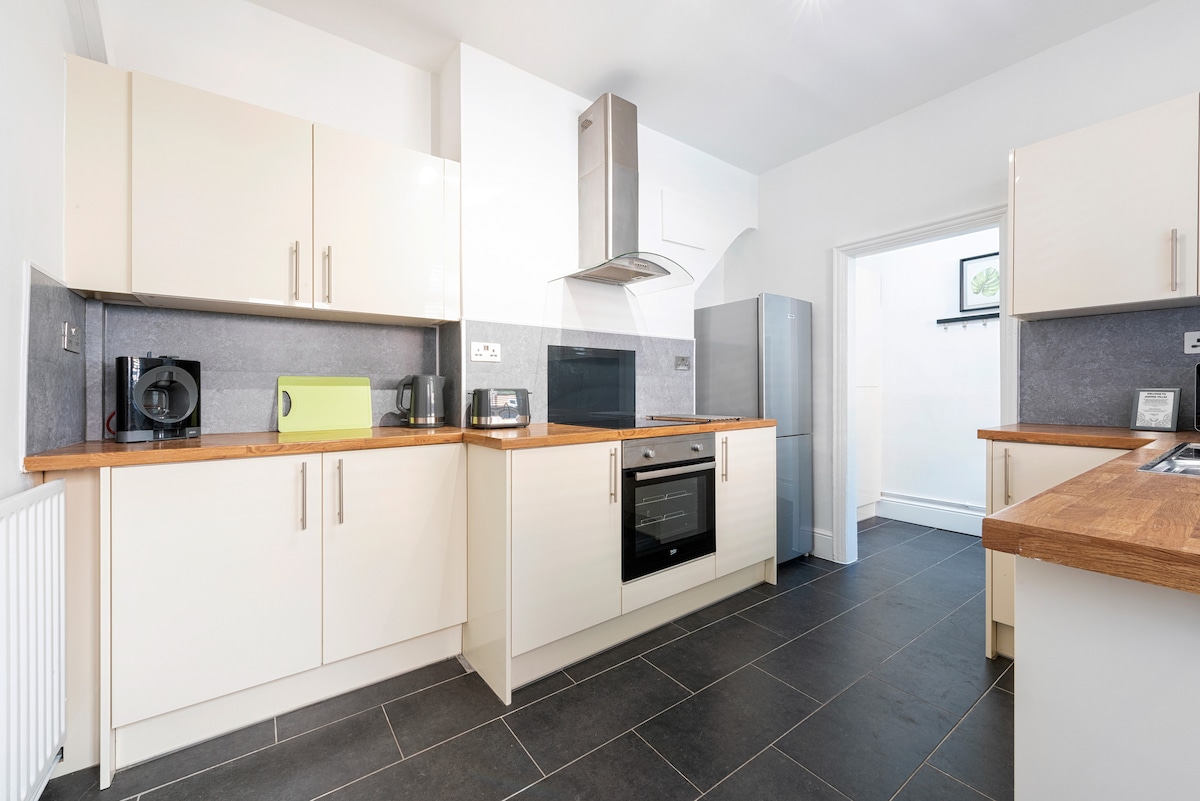 Maligayang pagdating sa magandang maluwang na 4 na silid - tulugan na bahay na ito, na perpekto para sa susunod mong pamamalagi sa Nottingham. Nilagyan ng 3x en - suite na king size na kuwarto at double bedroom na may sariling banyo, nag - aalok ang tuluyang ito ng maraming espasyo at kaginhawaan para sa hanggang 8 bisita para sa magandang pagtulog sa gabi. 10 minuto lang ang layo mula sa QMC (Queen’s Medical Center) at sa University of Nottingham kung maglalakad ka, at may mga koneksyon sa transportasyon sa mismong pintuan mo (5 minuto ang layo kung maglalakad ka), kaya madali mong makikilibutan ang lungsod ng Nottingham.