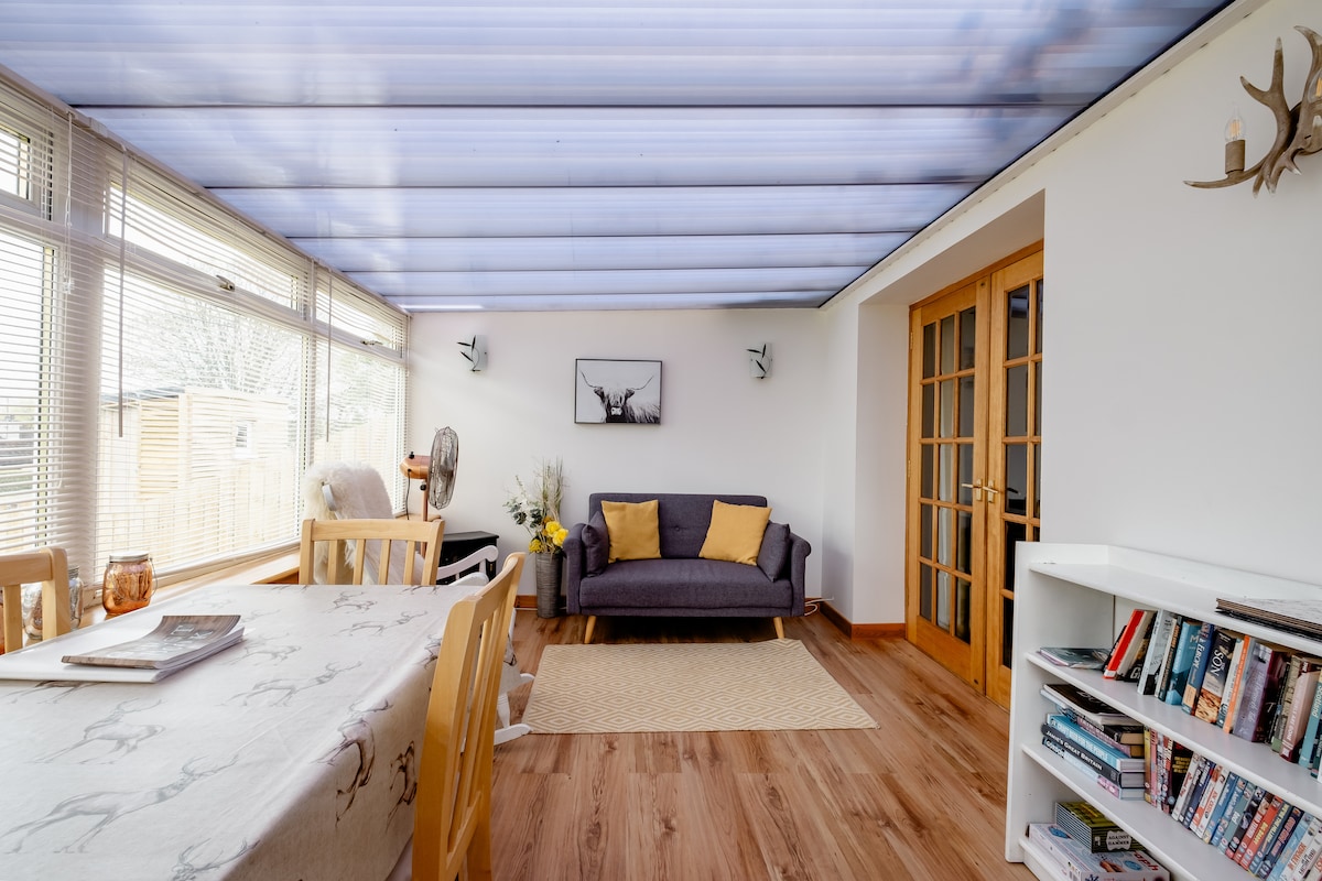 Pinalamutian nang mainam na may mga Scottish touch, perpektong bolthole o launch pad ang bungalow na ito para sa iyong Highland adventure. Matatagpuan sa isang tahimik na residensyal na lugar, ang property na ito ay may kamangha - manghang maliwanag na sunroom sa likuran, maaliwalas na sala at komportableng silid - tulugan na may Superking bed na mahihirapan kang pumunta sa labas. Ang kusina ay nagbibigay - daan sa iyo ng espasyo upang magsilbi sa sarili at kumain sa mesa sa sunroom, ang hardin ay nag - aalok ng isang kalmadong espasyo na humahantong sa isang parke.
