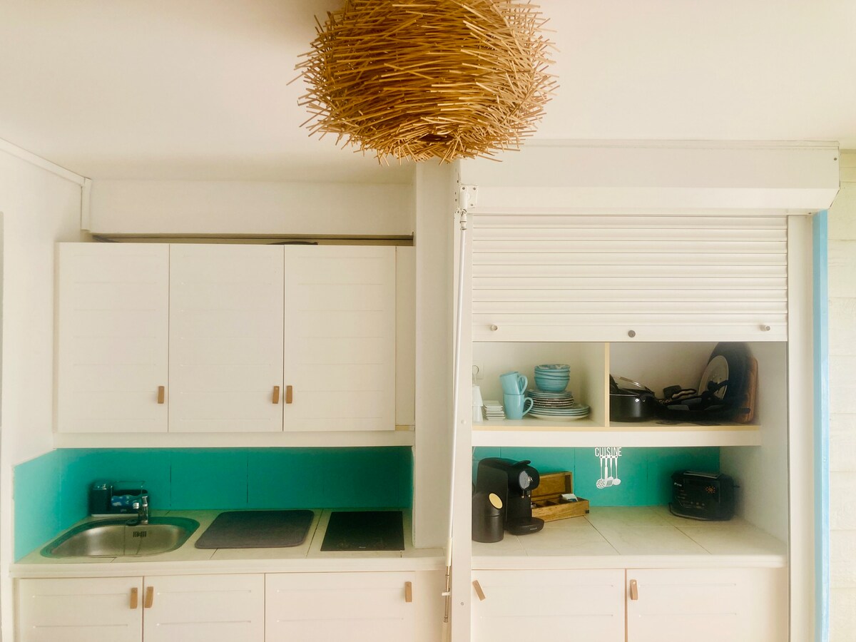 Magrelaks sa tahimik at naka - istilong tuluyang ito na matatagpuan sa holiday village na Sainte Anne . Ang tanging 4 - star na inayos na property ng turista sa tirahan . Gusto ka naming bigyan ng kusinang may kagamitan at kumpletong kagamitan para mapili mong kumain roon kung gusto mo. Maaari rin kaming mag - alok sa iyo ng pag - upa ng studio ng pakikipag - ugnayan para sa mga pamamalagi ng pamilya at makinabang mula sa isang malaking terrace na tinatanaw ang dagat na higit sa 20 m²