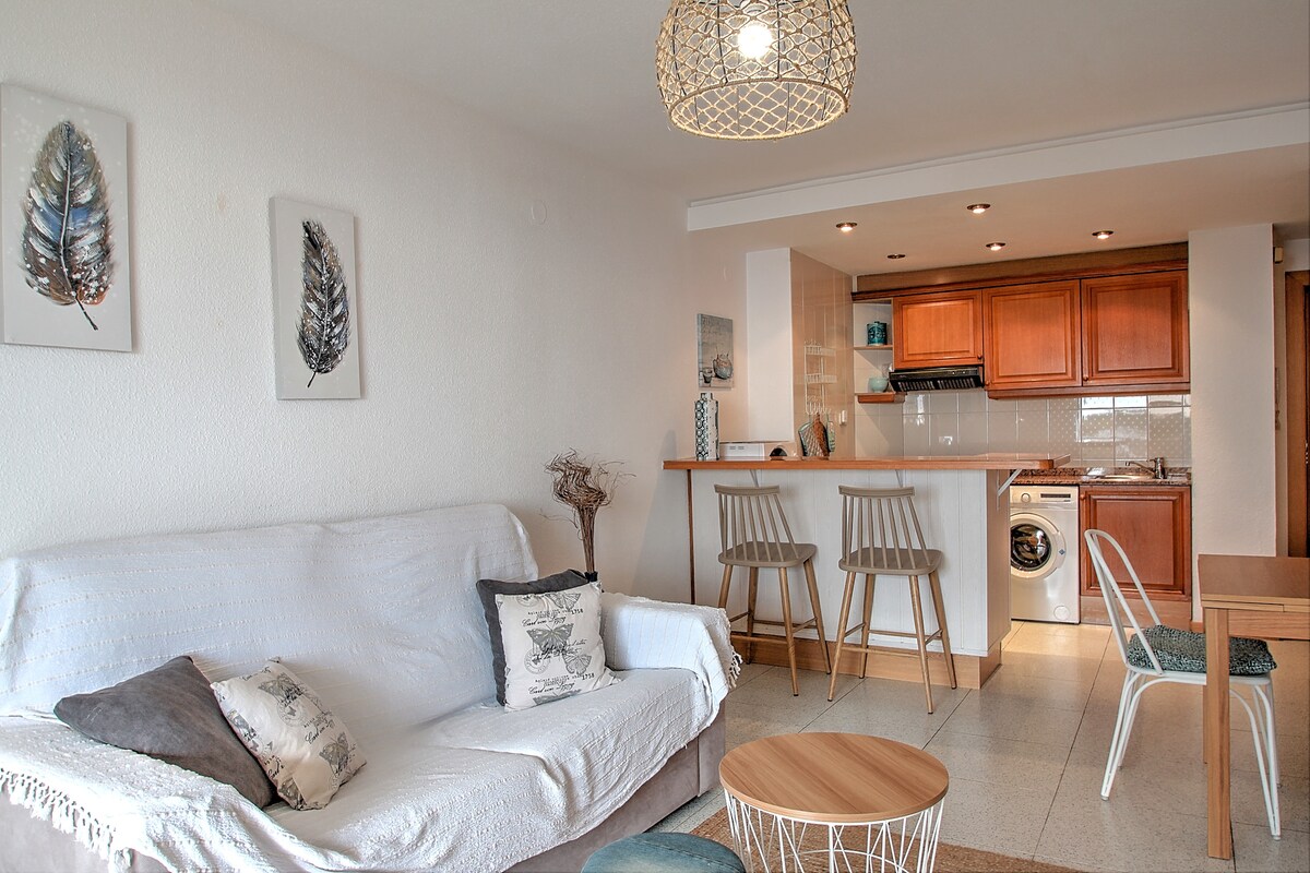 Magrelaks sa tahimik at maingat na pinalamutian na tuluyang ito, na ganap na na - renovate noong 2025. Salubungin ka ng mga may - ari na nakatira sa itaas. Southwest na nakaharap sa pribadong terrace kung saan matatanaw ang Sierra d 'Oltá. Nilagyan ang apartment ng double bedroom at sofa bed para sa hanggang 4 na tao. Banyo na may shower, magandang kusina na may kumpletong kagamitan at pribadong paradahan. Matatagpuan 1800 metro mula sa dagat at sa sentro ng lungsod ng Calpe. Ang mga paglalakad sa kagubatan ay umaalis 50 metro mula sa property.