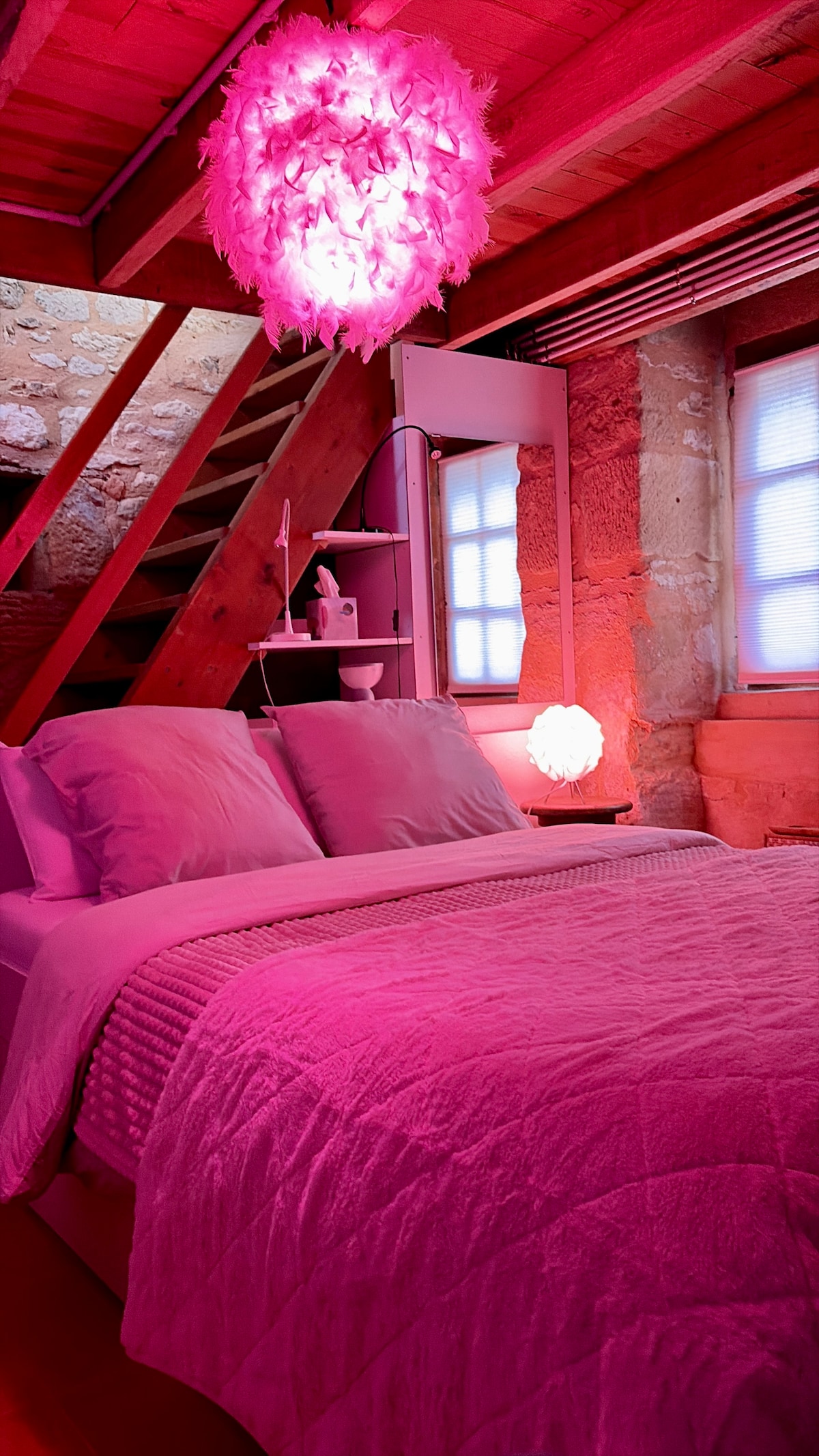 Notre petite grange se compose d'une grande pièce à vivre de 30m² avec coin cuisine, coin salle à manger, coin salon (avec son canapé lit couchage double 140cm), coin nuit (avec son lit en 160) et une salle d'eau avec wc. Vous aurez un coin de jardin privé à votre disposition. Idéale pour 2 personnes, elle peut néanmoins accueillir jusqu'à 4 personnes avec son canapé lit. Chauffage par poêle à granulés. Les granulés sont fournis.
