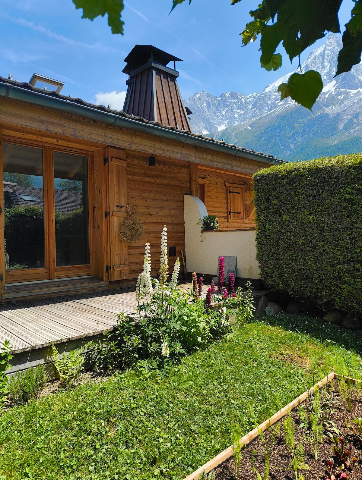 Nous sommes heureux de vous accueillir dans notre adorable petite maison/ ancienne remise maçonnée entièrement rénovée et réaménagée avec soin mi 2021. Belle terrasse sud ombragée l’après midi, vues vraiment magnifiques et dégagées vers le Mont- Blanc, les aiguilles de Chamonix, « au pied » du glacier des Bossons en face. En retrait de 20m de la route dans un quartier résidentiel. Transports à 2 pas. 2 places de stationnement devant la maison. Wifi. Pas de TV.
