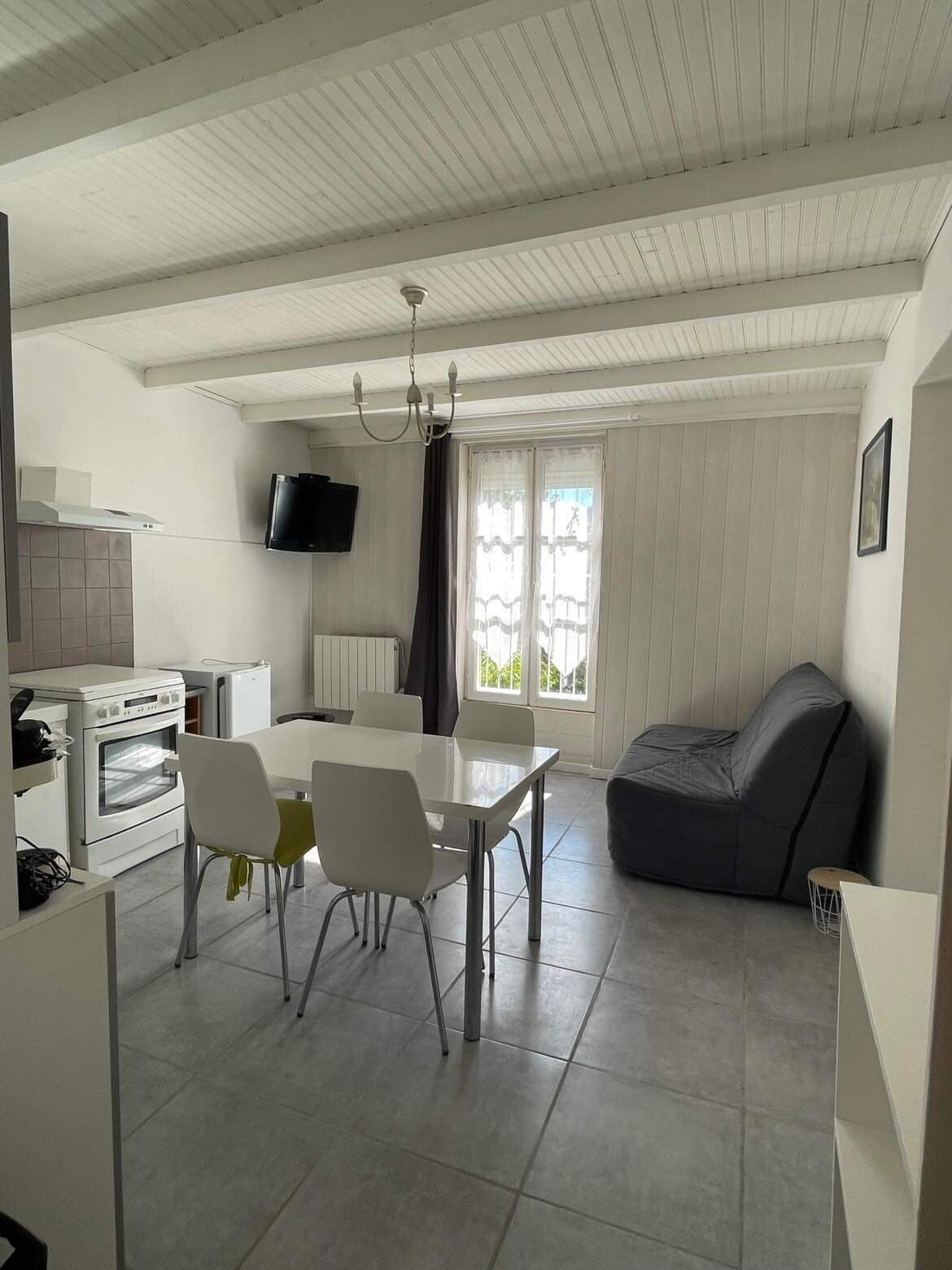 40m2 sa loob ng aming bahay. malaya . sa itaas sa ika -1. nababakuran na isang lagay ng lupa. sasakyan sa loob. kusina living room 16 m2 dining area, pinggan flat kaldero at kawali... kalan, microwave oven, coffee maker, toaster, boiler, extractor hood, refrigerator . I - click ang convertible clack 2 bed, TV. banyo shower mirror cabinet WC . 1 silid - tulugan 16 m2 na may kama 2 tao sa pamamagitan ng 190. wardrobe, malaking sofa hindi mapapalitan. double glazed window electric shutter. Bright South...