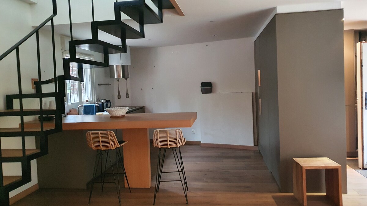 Détendez-vous dans ce logement calme et élégant. Un appartement confortable. A l’étage :une cuisine lumineuse ainsi qu’une salle de bain. Certes petite, elle a été pensée pour vous offrir un maximum de confort grâce à une baignoire balnéo spacieuse pour vous détendre en duo avec ses options jets/massages. Au rez de chaussée, un salon avec lit convertible et petite chambre attenante. Une baie vitrée vous apportera luminosité et vous offrira un accès sur un extérieur avec table .