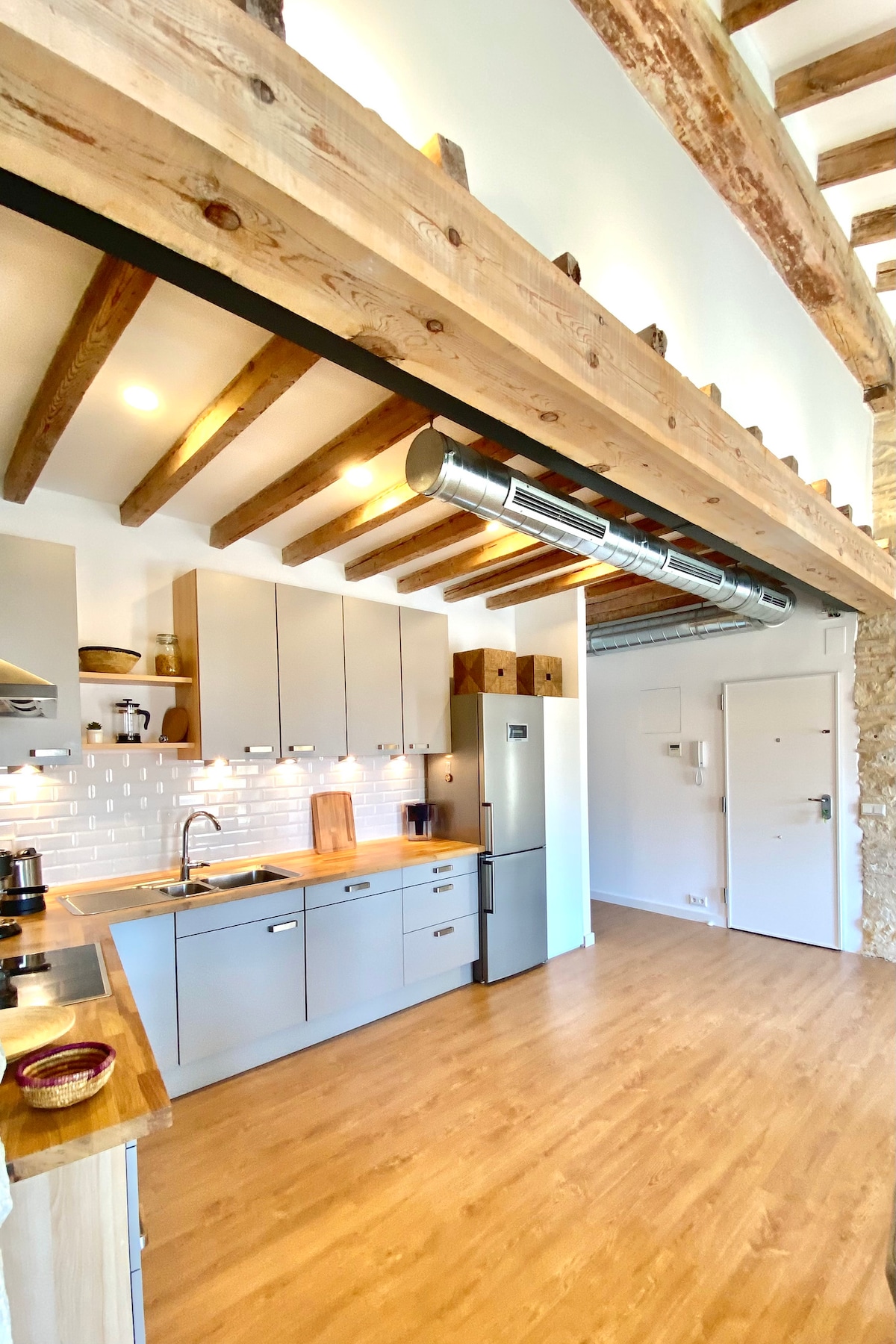 This beautiful, spacious and luminous 110 sqm loft is located in the heart of Alicante’s historic center with views over the old town. We renovated and designed this place respecting the traditional ways to build at the time, with limestone and wooden beams, while offering all the amenities of a modern apartment and a little bit of luxury. The beach is a 5 minutes (350m) walk away and the numerous nearby bars and restaurants invite you to enjoy the typical Mediterranean vibes of the old town.