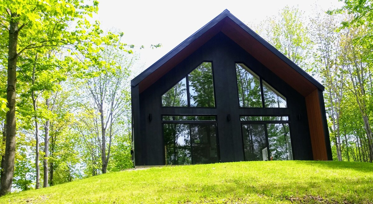 Maaliwalas na walang tiyak na oras na chalet na na - conceptualize ng mga arkitekto ni _leurathumaine. Matatagpuan sa cliffside sa isang altitude ng 490 metro (1600 talampakan), ang natatanging disenyo nito ay nakikilala sa pamamagitan ng pagiging matapang at pagka - orihinal at umaangkop sa pagkakaisa sa kapaligiran nito. Napapalibutan ng kagubatan, nag - aalok ang cottage ng mga nakamamanghang tanawin ng Mount Glen at ng nakapalibot na kalikasan na protektado ng Appalachian Corridor. Ang perpektong tahimik na lugar para magrelaks at magrelaks. Larawan: Adrien Williams / S.A. CITQ #302449