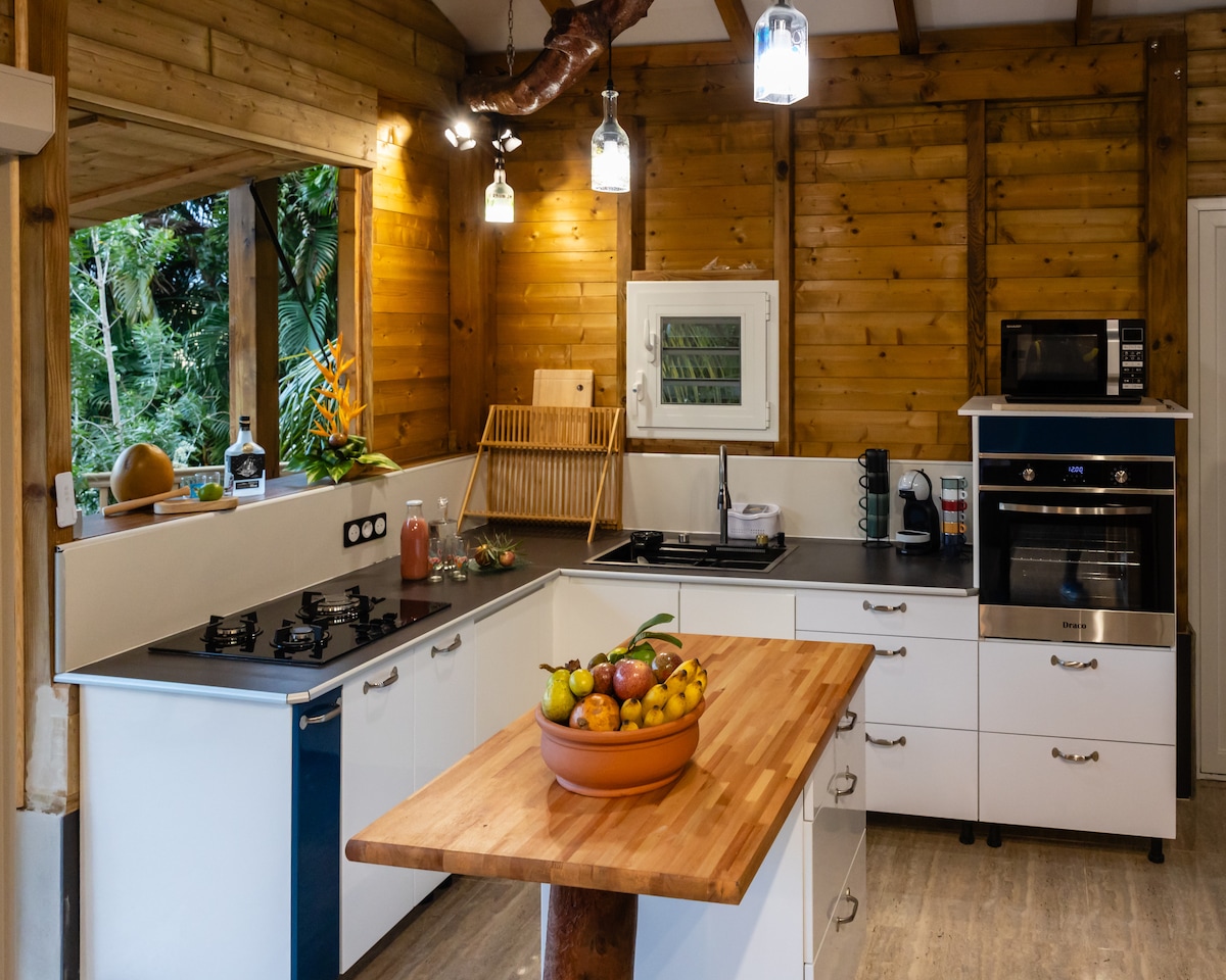 Ang natatanging ilean ay isang kaakit - akit na bungalow na gawa sa kahoy, na matatagpuan sa Martinique, sa munisipalidad ng Trois Ilets, sa gitna ng Ile aux fleurs, na perpekto para sa pagniningning sa buong isla. Mayroon itong naka - air condition na silid - tulugan na may TV, may kumpletong kusina, pinagsamang banyo, katabing covered terrace para sa mga pagkain at relaxation... Kinukumpleto ng pribadong HOT TUB ang package para sa kabuuang pagiging eksklusibo... Sa tabi ng aming villa, independiyente ito at may sariling pribadong access.