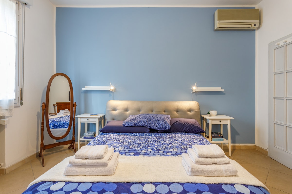 Apartment na may double bed, puwedeng paghiwalayin, at pribadong banyo. Malayang pasukan mula sa hardin. Malapit sa sentro pero nasa labas ng ZTL. Libreng paradahan sa Via Rainusso, ilang minutong lakad lang ang layo mula sa bahay. May bayad na paradahan sa ibaba/malapit sa bahay. Walang kusina, ngunit may de - kuryenteng coffee maker, refrigerator, kettle, microwave, at de - kuryenteng kalan, kaya maliit na kusina (nilagyan ng mga kagamitan sa pagluluto). Libreng naka - pack na almusal. Puwede ang mga alagang hayop nang walang dagdag na bayad!