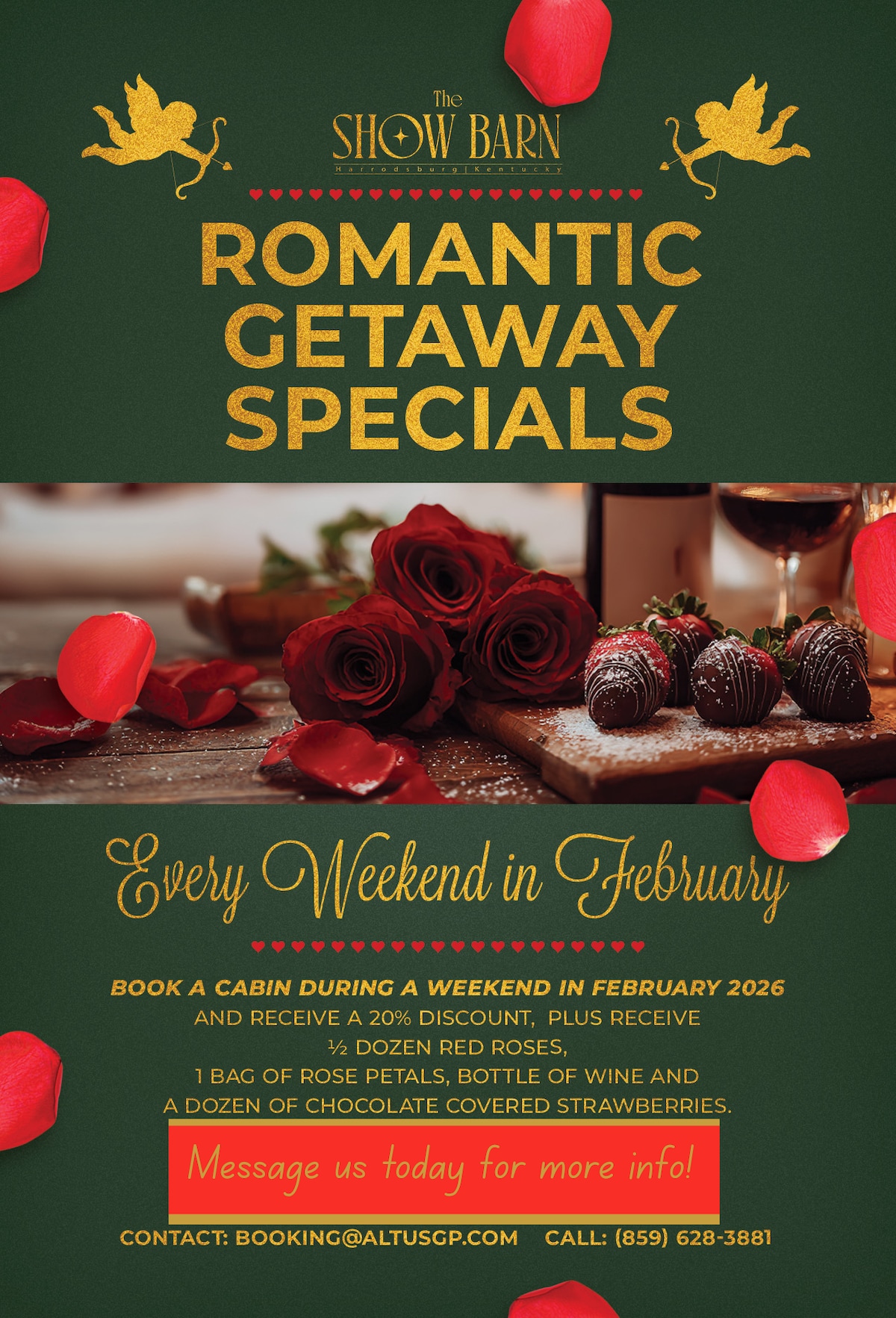Valentine's Special Every Weekend in February! Please see images for more details Our cozy cabins are nestled on a private farm, perfect for making memories that will last a lifetime. A full kitchen makes for effortless in-cabin dining, Private hot tub, scenic views of the countryside from your private back porch, convenient location to Lexington (20 min. to Airport), Louisville, Frankfort, and Danville.