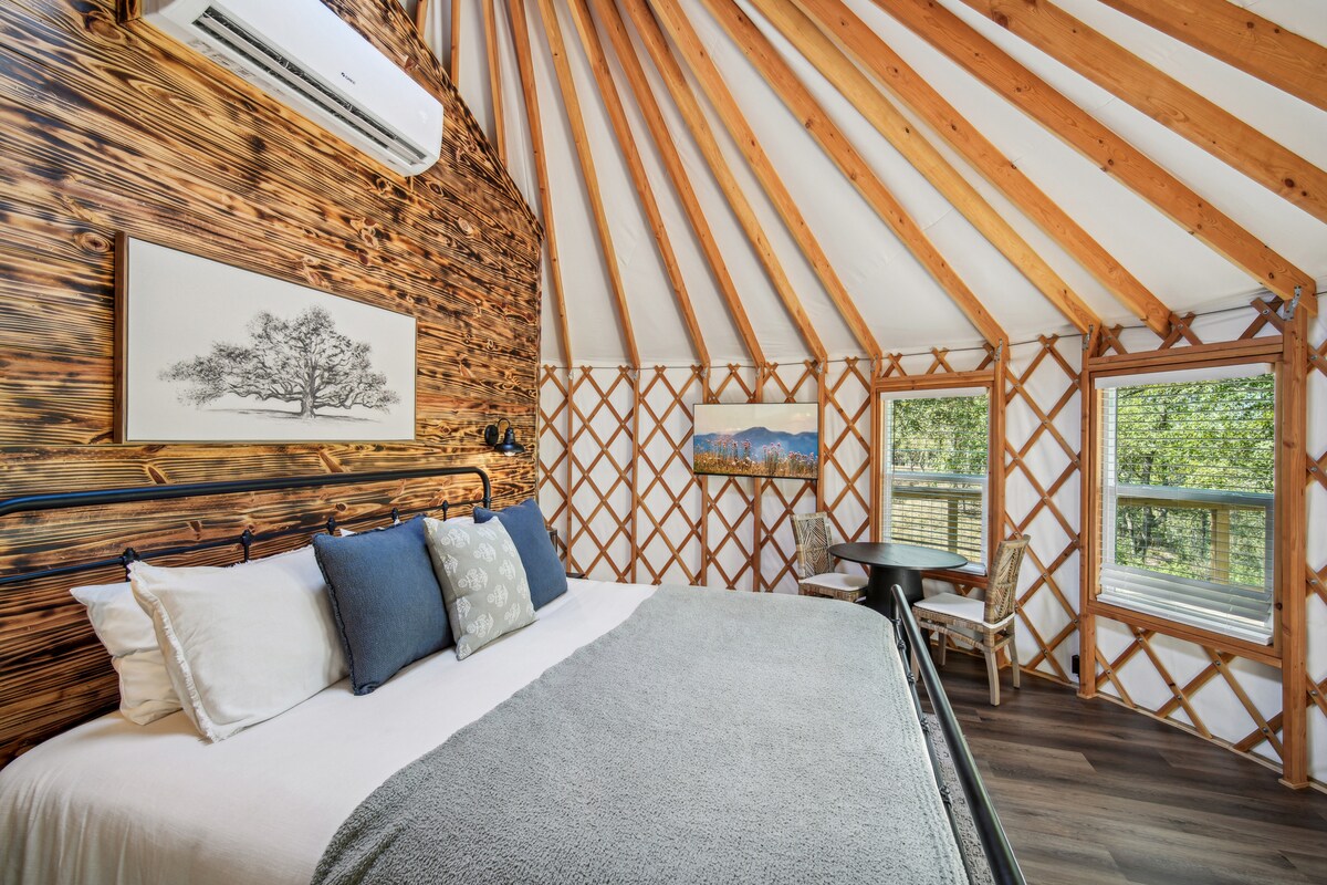 Enjoy nature in a luxurious, climate controlled setting nestled in beautiful piney woods! Our safari tent is equipped with everything you need to relax and unwind. Take a bath in the claw foot tub, enjoy a book on the front porch, and sleep peacefully in the cozy king sized bed. Pinehaven will provide you an unforgettable glamping experience! Located approximately 20 minutes from Round Top, Texas.