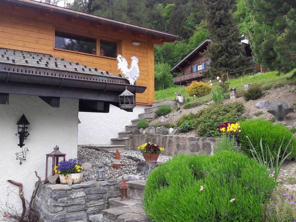 Ang maliit at pribadong Swiss chalet na ito ay maginhawang komportableng bakasyunan para sa isa o dalawang tao. Nag - aalok ang balkonahe ng kahanga - hangang tanawin ng Rhone Valley at Swiss Alps ng Valais. Tamang - tama para sa mga mahilig sa kalikasan o sa mga taong gusto lang lumayo para makapagpahinga at makalanghap ng hangin sa bundok ng Switzerland. Ang chalet ay kumikilos ng isang punto ng pag - alis para sa mga paglalakad sa bundok o pagha - hike, pagsakay sa bisikleta, snowshoeing o kahit na cross country skiing sa panahon ng taglamig. Mapupuntahan ang mga ski slope at thermal bath sa loob ng 30 minuto sa pamamagitan ng kotse.