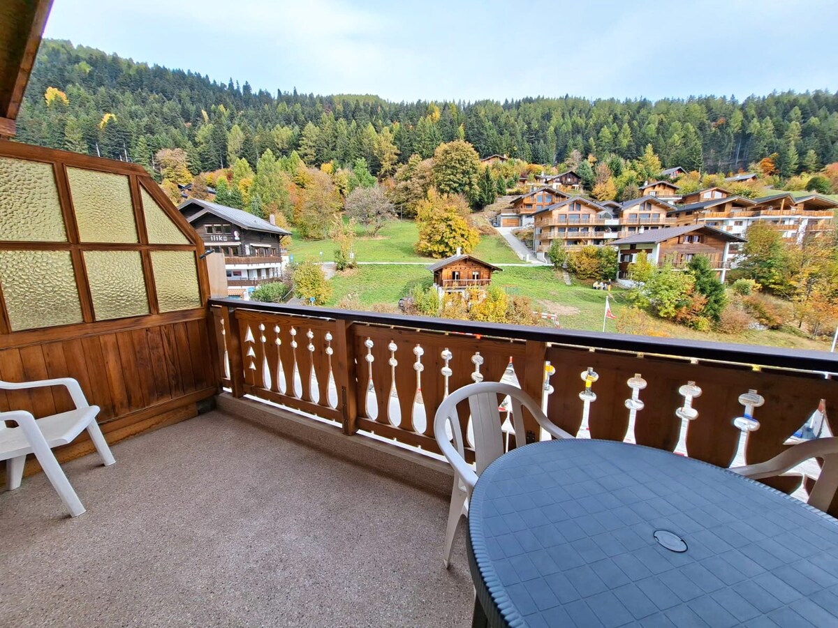 Nasa gitna ng Valais Alps Ovronnaz, ang thermal/wellness center nito, ang ski resort nito at ang maraming panimulang punto nito para sa mga mountain hike. Kaaya - ayang studio, nakaharap sa timog, walang harang na terrace. Tamang - tama para sa 2 ngunit nilagyan para sa 4. Coffee maker (Delizio), takure, toaster, fondue /raclette oven service. Available ang TV/ Wi - Fi Crib kapag hiniling Playroom (ping pong, foosball) sa itaas. Ski locker Place de parc 300 metro mula sa thermal center Ilang m. papunta sa hintuan ng shuttle bus