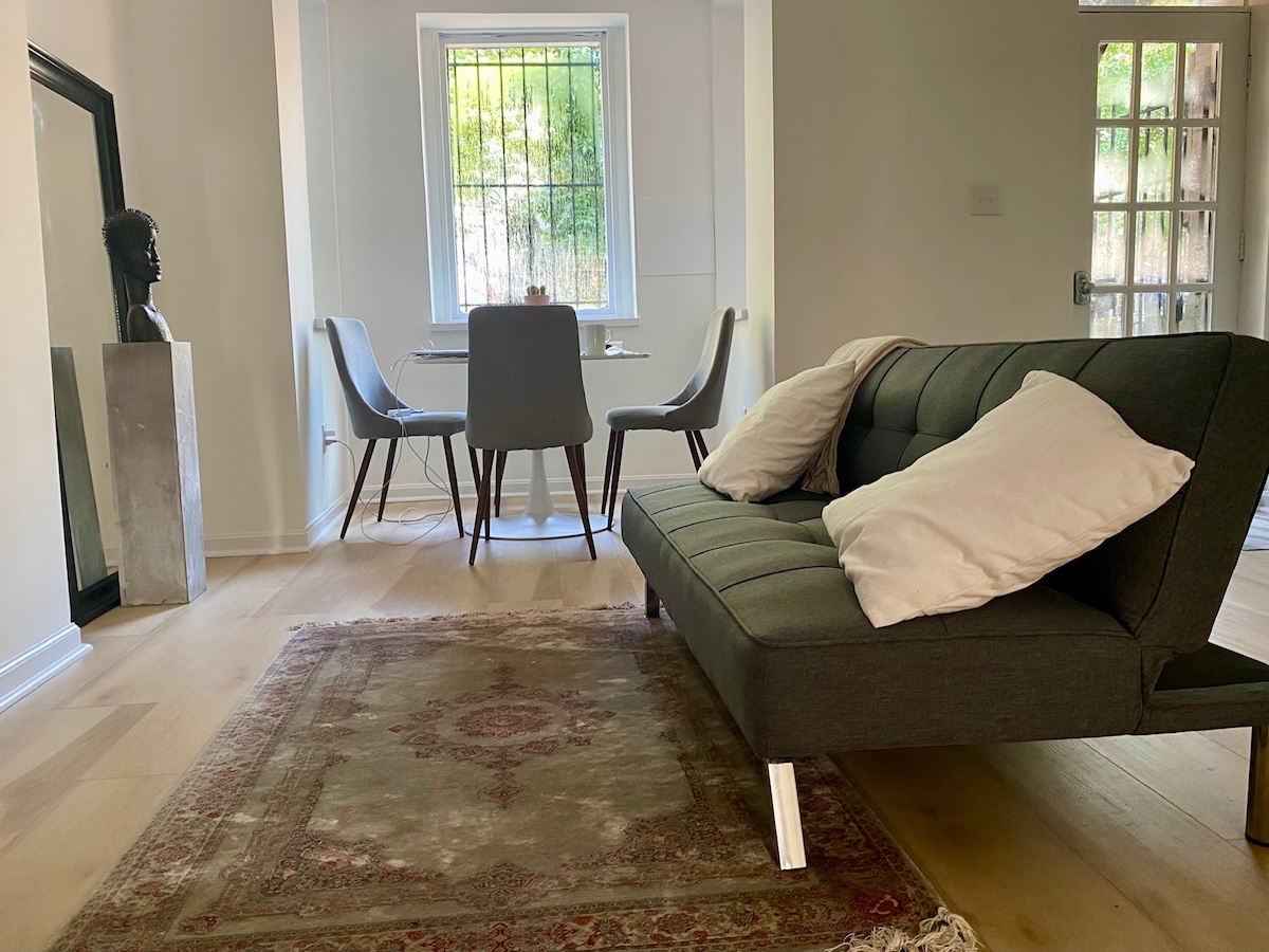 Magandang binagong modernong apartment na may mga bagong kasangkapan at muwebles, gumagamit ng malinis na enerhiya, at malapit lang sa pinakamagagandang atraksyon sa D.C.: U.S. Capitol, Korte Suprema, Union Station, National Mall, at mga museo ng Smithsonian. Magugustuhan mo ang makasaysayang kapitbahayan na maaaring lakaran at ang kalapitan sa mga restawran, cafe, parke, nightlife, Eastern Market, at pampublikong transportasyon. Isa itong pribadong basement apartment. Nakatira ako sa bahay sa itaas. Mainam para sa mga magkasintahan, solo adventurer, at business traveler.