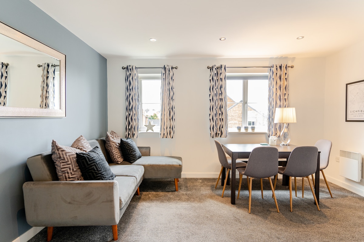 Enjoy a stylish experience at this centrally-located place with a short walk to Lichfield Cathedral in the heart of the City. Property has free parking right outside and property has its own front door. New luxury bathroom with Molton Brown toiletries. Can sleep Upto 6 people with 2 bedrooms and a sofa bed. Complimentary breakfast cereals Within a short walking distance to Lichfield City Train station and Bus station and the many bars and restaurants that Lichfield has to offer