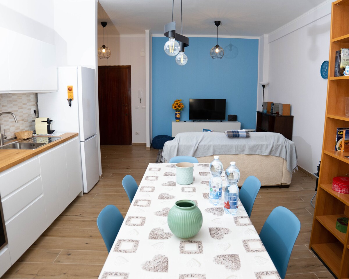 Ang Tramonti Suite ay isang penthouse na may tanawin ng dagat na nilagyan ng malambot at natural na kulay. Nagtatampok ng silid - tulugan, sala na may kumpletong kusina, banyo at dalawang terrace na matutuluyan, na ang isa ay malawak, sa harap lang ng silid - tulugan. Matatagpuan ang apartment sa tabing - dagat, ilang metro mula sa pier ng Ostia, mula sa pangunahing parisukat at 10 minutong lakad mula sa istasyon ng tren para sa sentro ng Rome at mga bus papunta sa Fiumicino airport.