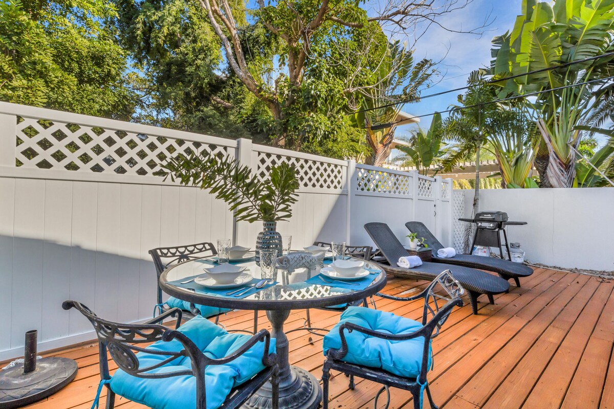 Welcome to one of our fabulous properties with 24/7 Host Support - no AI messaging. Newly renovated ground floor unit! Brand new kitchen & bathroom! Relax & unwind at this unique & tranquil getaway, nestled among the trees & just a short walk to the stunning white sand beaches of Lido Beach! Enjoy your evenings on the new deck (& outdoor shower) off the master. Cute patio off the dining area & a screened in lanai for morning coffee. We have a private pool for the complex!