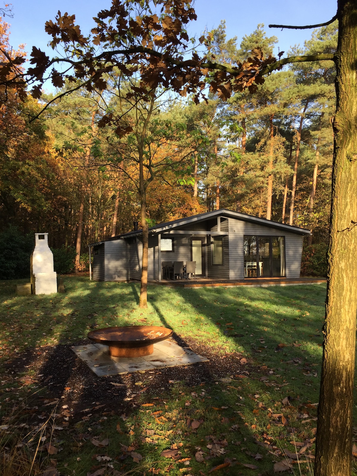 Natatanging chalet sa gitna ng kakahuyan, malapit sa maraming daanan ng paglalakad at pagbibisikleta. Ang chalet na ito ay isang perlas para sa mga taong mahilig sa kapayapaan. Ang lugar ay ganap na nakapaloob. Maaari mong iparada ang kotse sa loob ng bakod. Ang chalet ay may mga utility tulad ng tubig, kuryente at central heating at may natatanging tanawin ng pond. Maaari kang makakita ng mga bihirang ibon tulad ng kingfisher. May wifi at smart TV. Ang coffee maker ay Senseo. May mga kainan at supermarket sa paligid.