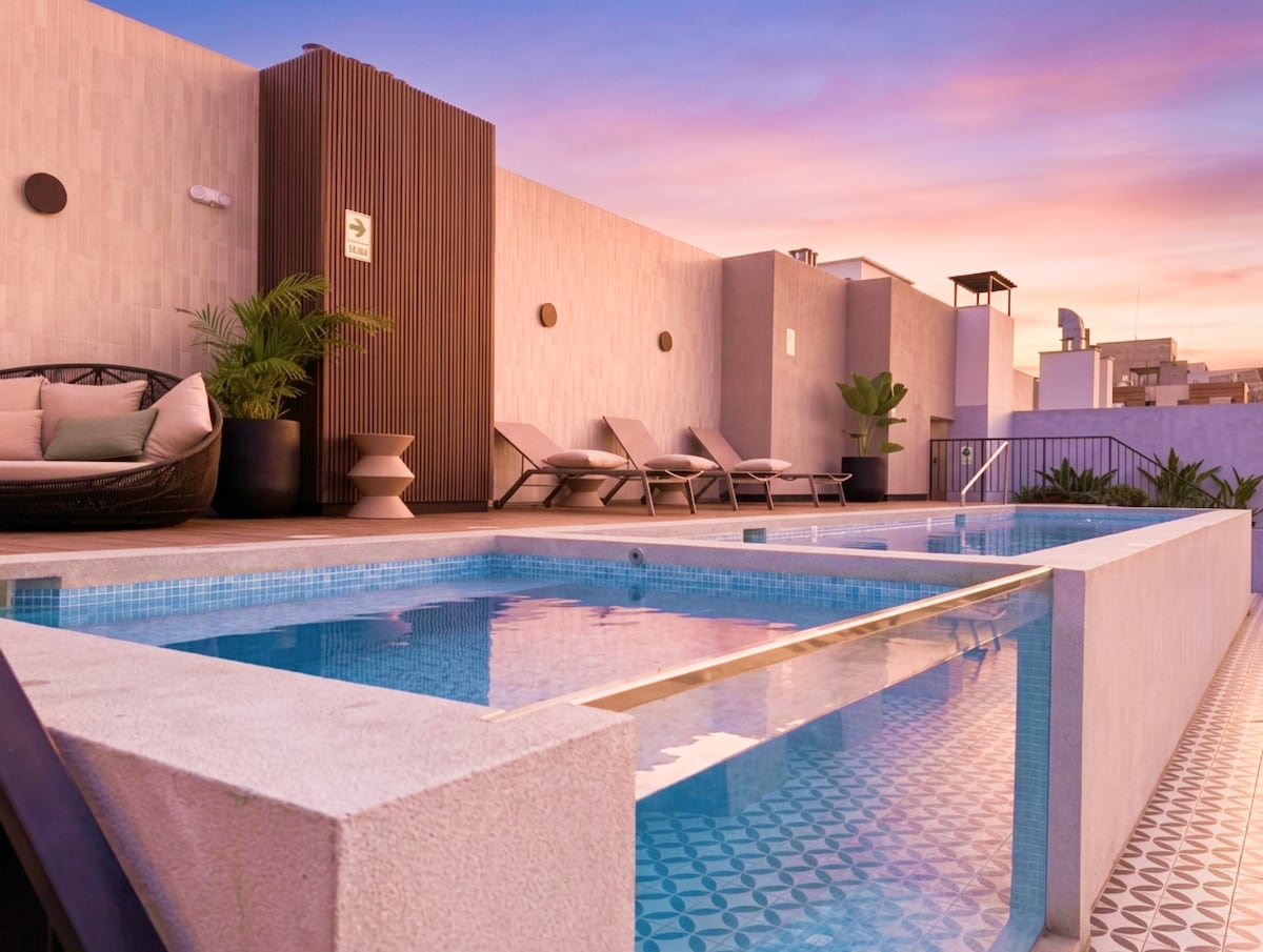 Masiyahan sa Barranco, mga hakbang mula sa Miraflores at sa Malecon de Larcomar. Nag - aalok ang modernong apartment na ito ng mga nakamamanghang tanawin ng dagat mula sa espasyo at access sa pool at jacuzzi na may 360° na tanawin ng lungsod at dagat. Mainam para sa mga mag - asawa, pamilya o malayuang trabaho gamit ang high - speed na Wi - Fi. 24/7 na seguridad, sariling pag - check in at mainam para sa alagang hayop. Ikalulugod kong tulungan kang tumuklas ng mga aktibidad tulad ng surfing o paragliding sa Miraflores. Mamuhay nang komportable, may privacy, at pribilehiyong lokasyon.