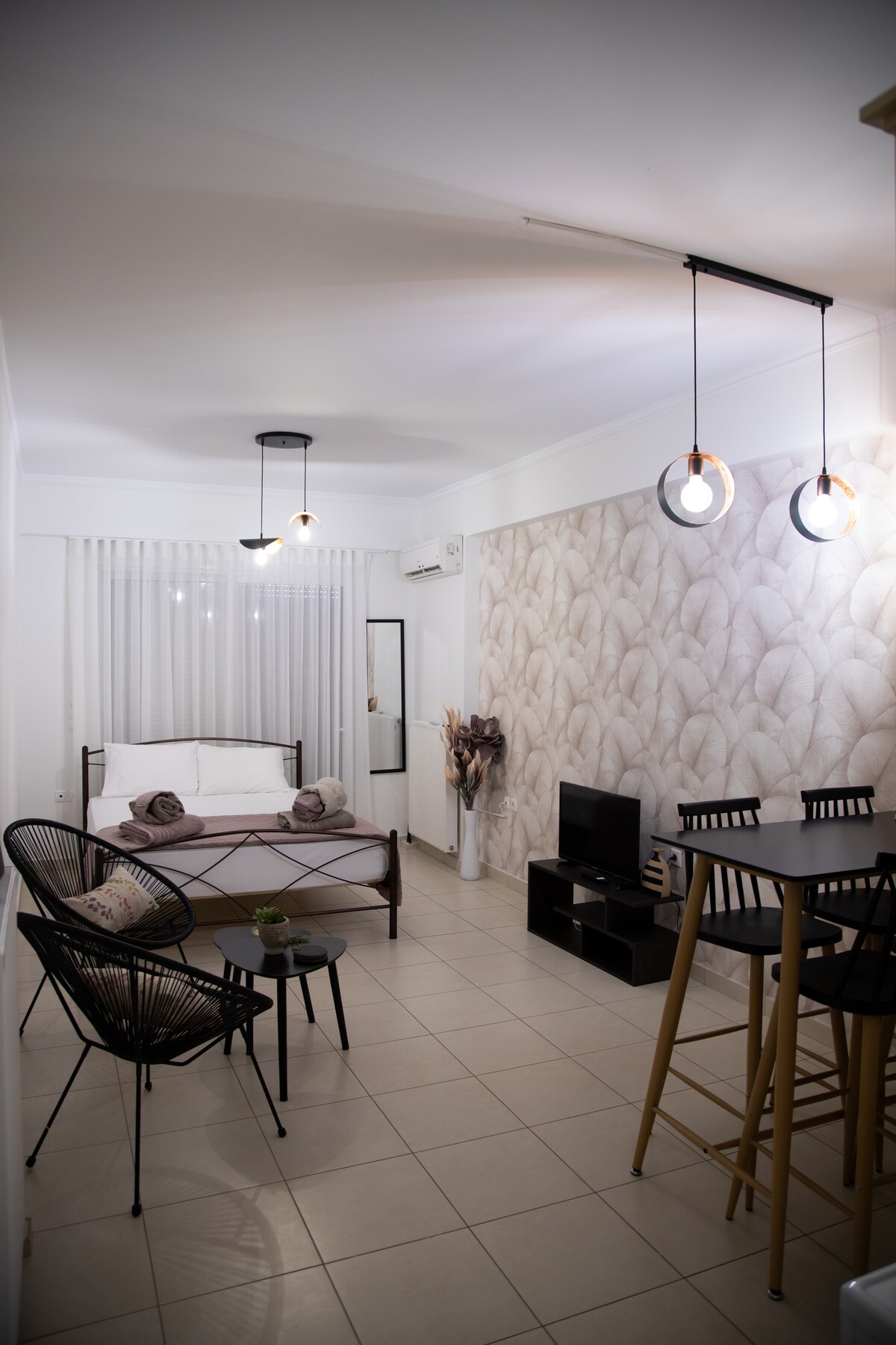 Chameleon Premium Loft is located in a very quiet and convenient area of Nafplio, just a short walk from the center of the Old Town and the picturesque beach of Arvanitia, nearby supermarkets and taverns. A brand new and comfortable studio in a minimal modern style, is located on the roof of a newly built 3-story building with a panoramic view of Nafplio and a front view of the imposing Palamidi Castle, Bourtzi Fortress, and the most spectacular sunsets!