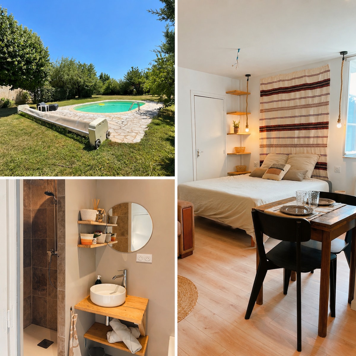 Nakaharap sa Villefranche s/s, na matatagpuan sa mga sangang - daan ng Beaujolais, Dombes, asul na lane, Ars sur Formans at A6 motorway, tinatanggap ka ng mga AIN DES TOUR sa isang bagong 35 M2 na tuluyan sa ground floor ng isang hiwalay na bahay. Maliit +, maa - access ang aming pool mula Hulyo hanggang Setyembre ayon sa mga itinakdang oras. Mahahanap mo ang lahat ng kaginhawaan na kailangan mo, nilagyan ng kusina, tv, wifi, independiyenteng kuwarto (kama 160 ) , sofa bed (140 kama), WC shower, may lilim na loob na patyo na may 220V outlet.