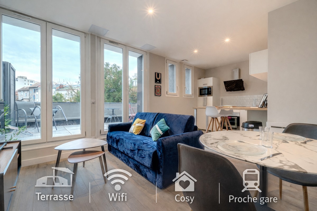 Magrelaks sa inayos na tuluyan na ito na may natural at naka - istilong dekorasyon. Ang pagkahagis ng isang bato mula sa istadyum ng BEAUBLANC, 8 minuto sa pamamagitan ng kotse mula sa SENTRO NG EKSIBISYON ng ZENITH at Limoges at malapit sa mga pag - access sa motorway, ang MONET ay akitin ka sa maraming mga amenities na magdadala sa iyo ng lahat ng ginhawa na kailangan mo para sa iyong paglagi. Matatagpuan sa maliit na gusali sa tahimik na kalye, mayroon kang pribadong paradahan sa panlabas na paradahan ng tirahan.