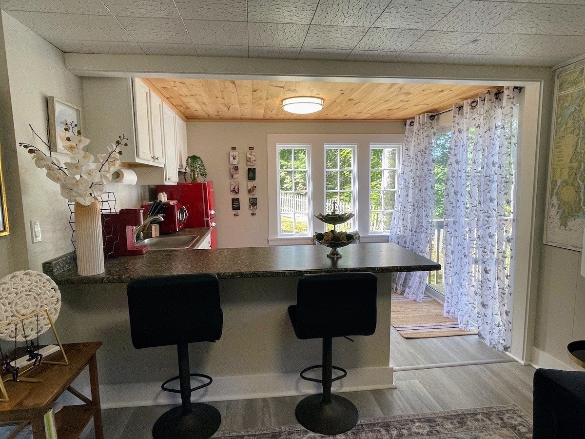 Tuklasin ang bagong inayos na 2 - bedroom, 1 - bathroom na tuluyan na ito sa tahimik na kapitbahayang pampamilya sa Hallowell. Ginagawang perpektong bakasyunan ang rustic - modernong disenyo ng tuluyang ito, natural na liwanag, at mga bagong amenidad. Magrelaks sa hot tub, maghurno sa deck, mag - enjoy sa likod - bahay o bumisita sa downtown Hallowell at tuklasin ang mga restawran, cafe, live na musika at antigong tindahan nito. Ilang minuto rin ang layo ng tuluyang ito mula sa ilang hiking at walking trail na matatagpuan lahat sa aming guidebook.
