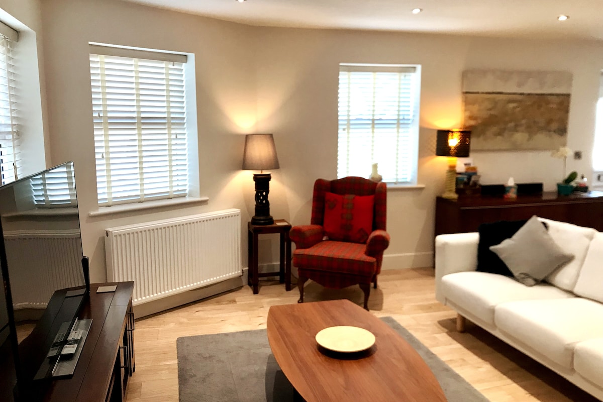 I - unwind, magrelaks at mag - enjoy sa aming naka - istilong, marangyang super king size na tuluyan, na may mga tanawin ng kastilyo at malinis at modernong pakiramdam sa muwebles at dekorasyon. Makikinabang ang tuluyan mula sa sarili nitong pribado at hiwalay na mga pasilidad ng shower at WC at sarili nitong independiyenteng access, na nagpapahintulot sa iyo na pumunta at pumunta ayon sa gusto mo. Kasama ang pribadong paradahan sa labas ng kalye, bilang alternatibo, malapit ang paradahan na may mga EV charging point. Kasama sa iyong kuwarto ang mga libreng pasilidad para sa tsaa at kape at gamit sa banyo.