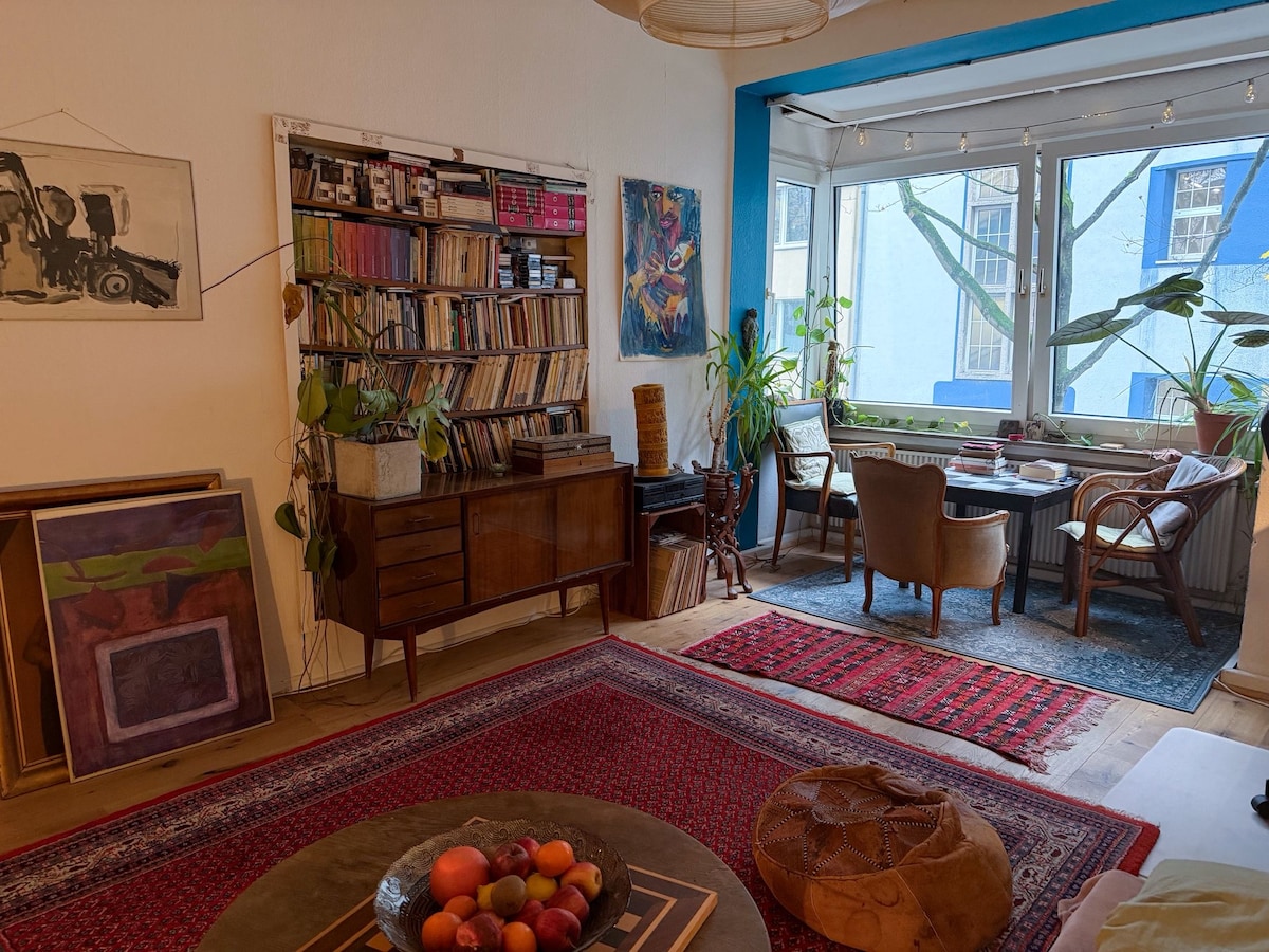 Nakatira sa nakalistang lumang gusali, nagpapalamig sa pribadong terrace, nakakarelaks sa paliguan nang may natural na liwanag, nagluluto sa sarili mong mini kitchen. Maraming ilaw at hangin. May maliit na workstation na may computer. Nag - aalok ang nakapalibot na lugar ng hindi mabilang na restawran at cafe. Sa loob ng maigsing distansya, may iba 't ibang venue ng konsyerto at kaganapan. Nasa labas mismo ng pinto sa harap ang metro stop na Piusstraße. Mula roon ay 18 minuto papunta sa KölnMesse, 30 minuto papunta sa paliparan, na may maikling distansya papunta sa Dom/Hbf at Neumarkt.