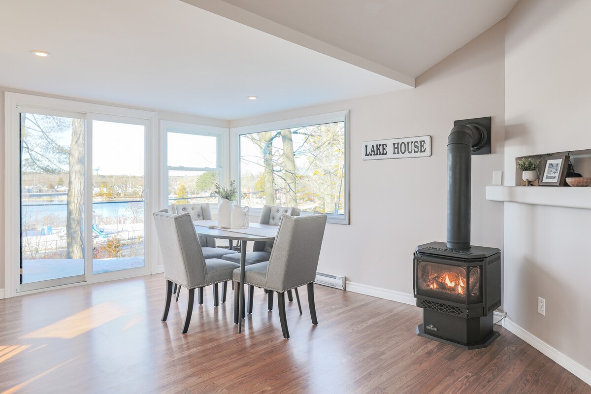 Enjoy panoramic views of Lower Buckhorn Lake with the family! Relax perched in the hot tub atop the rocks of the Canadian Shield, nestled among the tall pines. This newly updated waterfront cottage features 3 bedrooms & an open concept living space. Over 280 feet of waterfront for you to enjoy the sunrise & sunsets & fish off the dock! Get cozy on the couch, play games, or watch movies. Take a stroll around the island. Hi speed Wi-fi to work or play. 6 minutes to town, less than 2 hrs from GTA.
