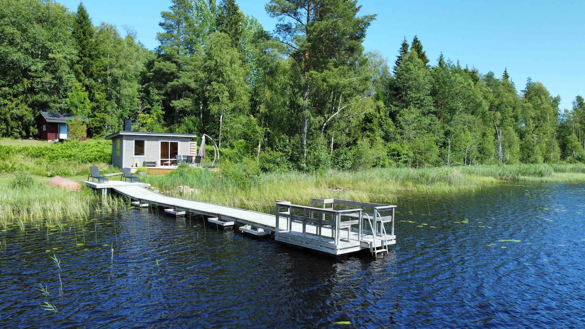 Napakagandang cottage na may property sa tabing-lawa! Sauna, hot tub at bangka na may engine. Mahabang jetty sa tabi ng beach at swimming raft na may diving tower. Ang cottage ay nasa isang lugar na may 7 cottage ngunit ganap na hiwalay sa mga kapitbahay. 5 minuto mula sa E4. May 10 minutong biyahe mula sa cabin. Walang kuryente o tubig ang cabin. May sariwang tubig sa mga lalagyan ng tubig sa panahon ng pamamalagi Gas stove na may oven at gas refrigerator. Available ang hot tub para sa Pasko ng Pagkabuhay - katapusan ng Oktubre. Puwede gamitin ang hot tub na tubig sa panahon ng Easter hanggang katapusan ng Oktubre.