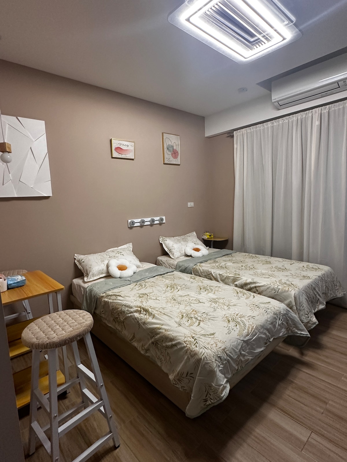"Qiu" Ang pagsasama - sama ng mga bulwagan ng paglikha ng panitikan, paggawa ng natatanging kapaligiran sa pamumuhay, ang maginhawang transportasyon ng dalawang track hub ay nagdaragdag sa kaginhawaan ng iyong pamamalagi. ——————————————————————————— Mga Malalapit na Atraksyon Taoyuan High Speed Rail Station (10 -13mins walk), Huatai Famous City (10mins walk), Xin Guang Cinema City (3mins drive/15mins walk), Yokoyama Calligraphy Park (8mins walk), Qingtang Park at Children's Art Museum (8mins), Taoyuan Airport (15mins drive/6), ang madaling access ay ang pinakamahusay na pagpipilian upang bisitahin ang iba 't ibang mga atraksyon. ——————————————————————————— Pagpaplano para sa dalawa: isang double bed Pagpaplano para sa dalawang tao: Dalawang single bed Ang presyong makikita mo ay para sa isang indibidwal na kuwarto ——————————————————————————— Mga pag - iingat para sa iyong pamamalagi May elektronikong lock sa loob at labas at garantisado ang kaligtasan ng mga kontrol sa sahig. Para protektahan ang kapaligiran, hindi ibinibigay sa kuwarto ang mga sipilyo, toothpaste, at labaha, dalhin ang sarili mo. Nilagyan ang kuwarto ng mga pasilidad sa paghuhugas at pagpapatayo pati na rin ng mga kagamitan sa pagluluto para sa iyong paggamit. Talagang walang tabako (kabilang ang mga e - cigarette), hindi pinapahintulutan ang mga alagang hayop sa loob at labas ng bahay. mga outlet home sa outlet lot, tamasahin ang naka - istilong lasa dito.