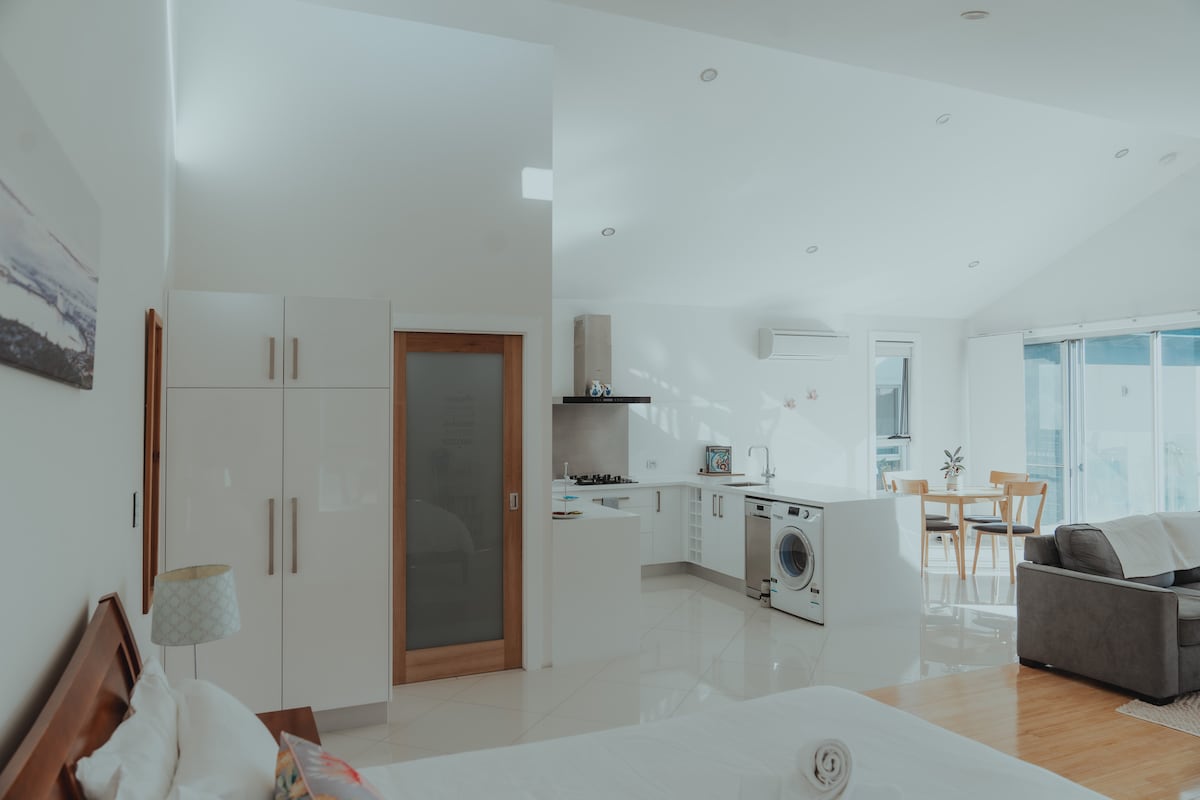 Mill Hill . Malaking liwanag na maaliwalas na renovated 3 silid - tulugan 2 banyo open plan home Paghiwalayin ang naka - air condition na may mga nakamamanghang tanawin ng daungan Matatagpuan sa gitna ng tahimik na bilog na lugar ng bayan na may malawak na paradahan sa labas ng kalye Walang limitasyong wifi smart tv Masiyahan sa 3 magkahiwalay na lugar na nakakaaliw sa labas na may laki ng pamilya na bbq at mga tanawin ng dagat Malaking nakapaloob na bakuran sa likod - bahay na undercover na sandpit na meandering papunta sa fire bin Maikling lakad papunta sa CBD main beach - local hospital parkplayground - corner store skatepark