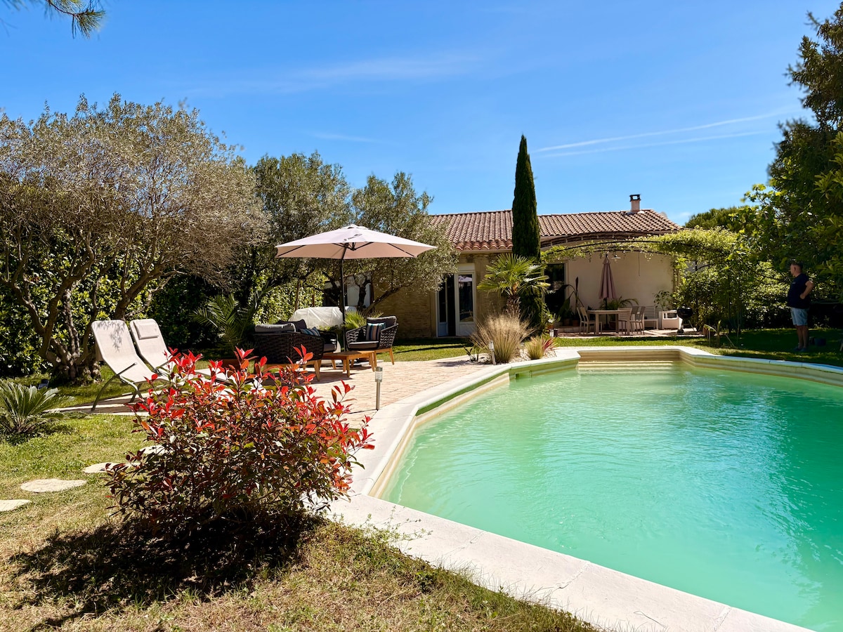 May perpektong kinalalagyan, kaibig - ibig na bahay sa nayon na bato na may panloob na patyo, pool pool, hindi napapansin. Dalawang minutong lakad ang layo ng St Remy Historic Center. Ganap na naayos sa taong ito, ganap na naka - air condition. Sa unang palapag, isang magandang sala, kusinang kainan na kumpleto sa kagamitan, labahan. Sa itaas na palapag, 2 silid - tulugan (mga kama 180 o Twins 2x90) sa bawat isa sa kanilang banyong en suite na may Italian shower at toilet. May mga linen, sapin, bath towel, at swimming pool.