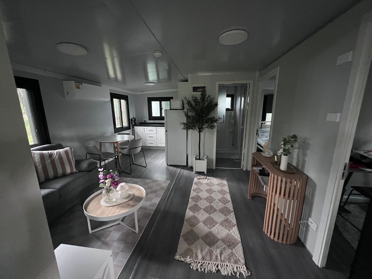 Relax in this private tiny home in Humpty Doo, set on a shared property with its own driveway, locked gate and undercover parking. The space includes a cosy double bedroom, a separate office, a fully equipped kitchen and a modern bathroom. Enjoy a spacious outdoor area surrounded by lush tropical gardens, offering peace and privacy. Close to local shops, pubs, markets and Top End attractions, it’s ideal for couples, singles or remote workers seeking comfort in a beautiful rural setting.