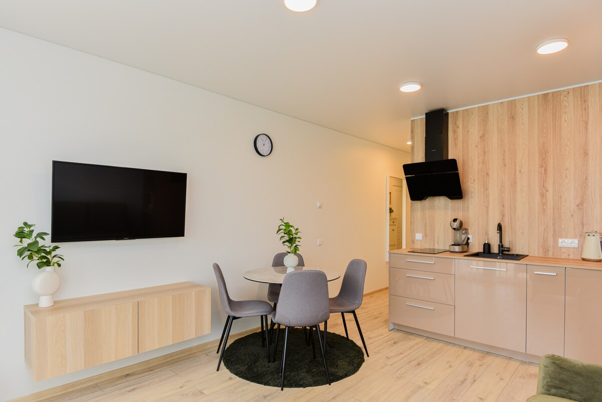 Matatagpuan ang apartment na ito sa home block na "My Sea", na itinayo noong 2021, sa Kunigiškės. Mainam ito para sa mga mahilig sa dagat at gustong makatakas mula sa kaguluhan ng lungsod - isang kahanga - hangang pine forest para sa mga mahilig sa kalikasan. Para sa mga mahilig sa aktibong libangan - 150 metro ang layo sa daanan ng bisikleta na nagkokonekta sa Nemirset - Palanga - Šventoji.