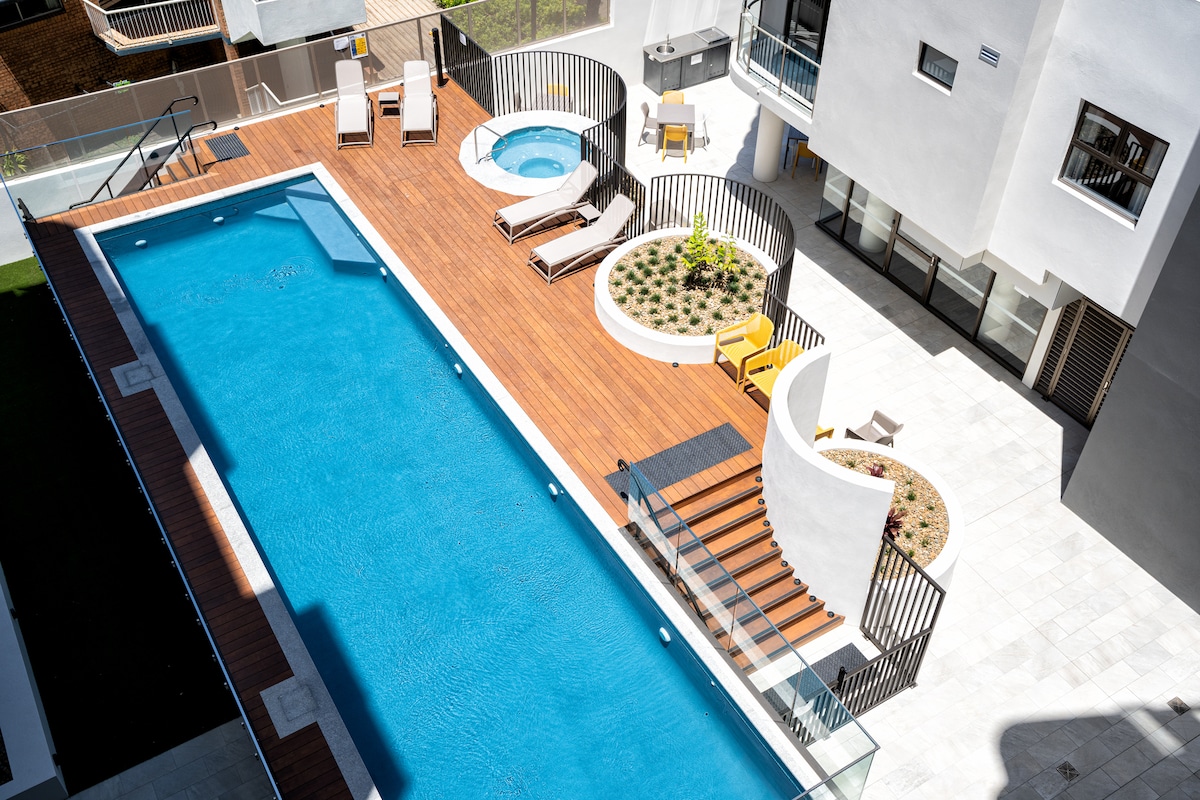 Maganda, Mapayapa, Malusog. Mainam na lugar para sa tunay na romantiko, mapagpahinga, maganda, at nakakapagpasiglang pamamalagi!! Inilarawan ng isa sa mga bisita namin kamakailan na "... Isang talagang mahiwagang lugar!" at "ang perpektong apartment". Nasa natatanging lokasyon ang aming apartment. Maikling lakad lang papunta sa beach at Hastings Street. Libreng Paradahan, Lap Pool, Family Pool, Steam Sauna, Gym, Paradahan, kumpletong gamit na kitchenette, Nespresso Coffee Machine, NBN Libreng Wifi, SAMSUNG 55 QLED 4K SMART TV, Catch up TV, Netflix, atbp.