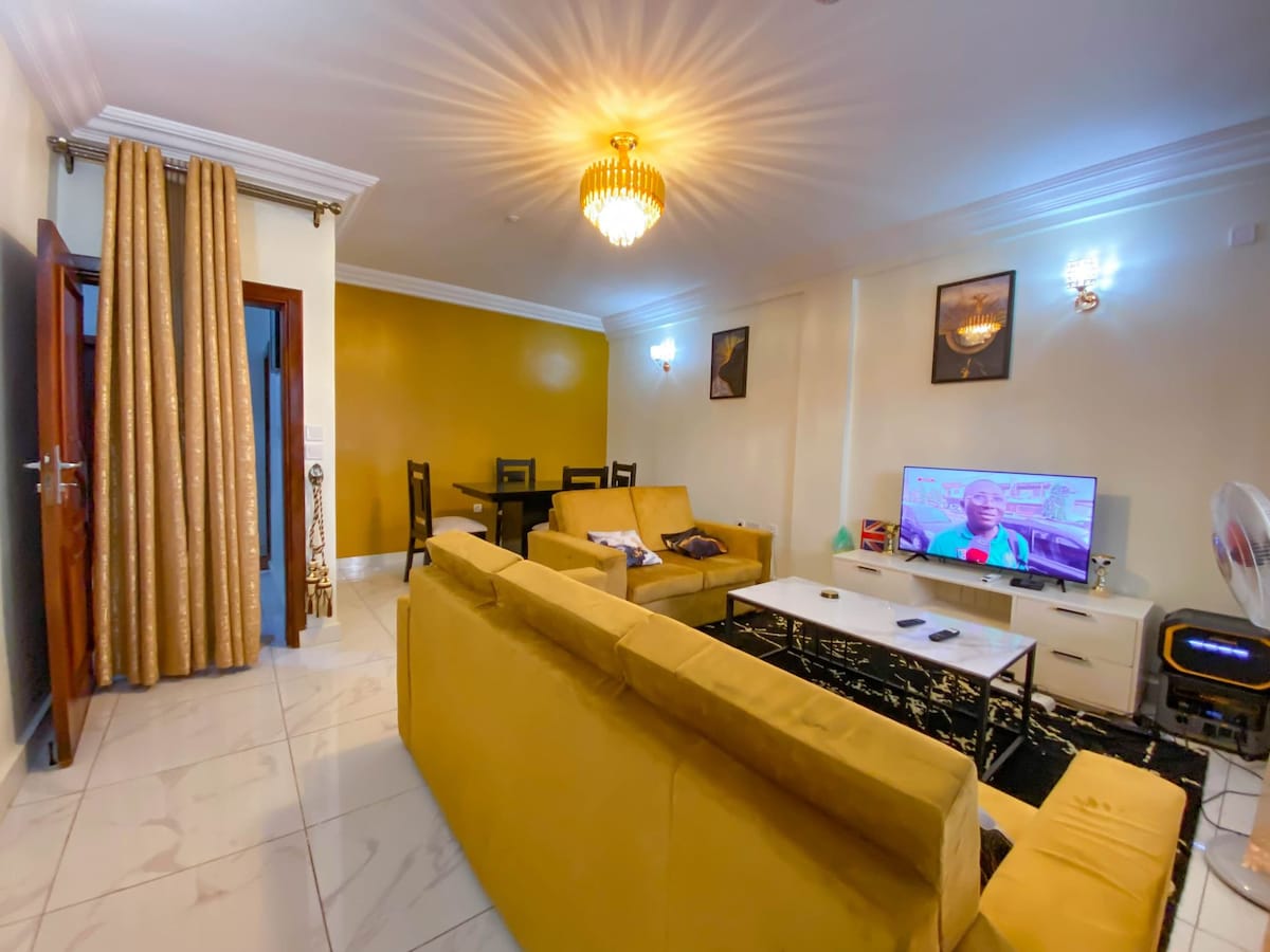 Luxury 2 bedroom apartment na matatagpuan sa pinaka - upscale na lugar ng lungsod Kumpleto ang kagamitan sa property at kasama ang lahat ng Invoice tulad ng Libreng Walang limitasyong Wifi, Elektrisidad, Satellite TV, Generator at Netflix Ang gusali ay may 24 na oras na seguridad at isang Beauty Institute Kilala ang Bonapriso dahil sa residensyal at iba 't ibang kultura nito na may mga amenidad tulad ng mga prestihiyosong lounge, bar, restawran, supermarket, at iba pa.