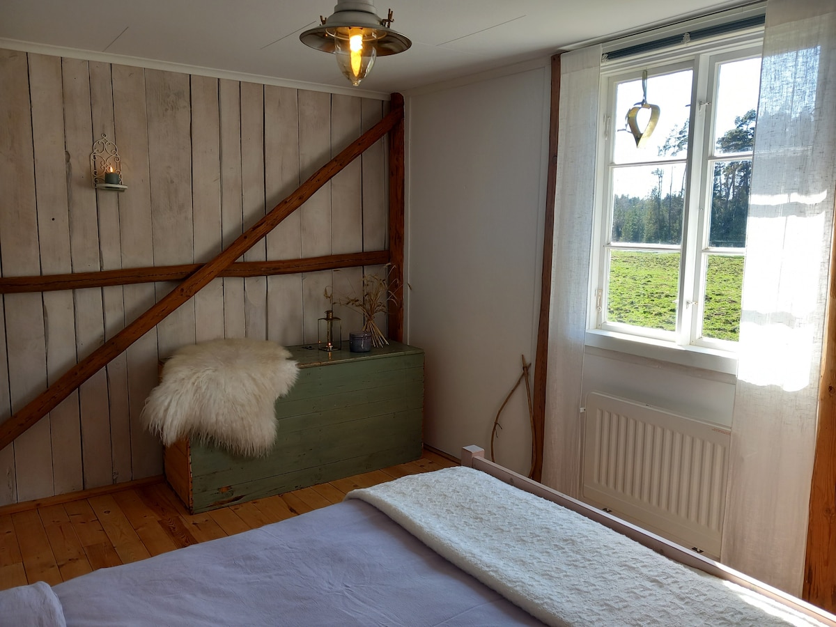 Vårt gästhus ligger i liten by med ca 50 personer. Det är en lugn och fridfull miljö mitt i naturen. Du har tillgång till flera promenadvägar i skog och mark, närhet till insjö med bad o fiske och till byns stolthet, ett riktigt fint bussmuseum. Vårt vatten är av bästa kvalitet Till gästhuset ingår fri parkering och wifi. Tyvärr har vi ingen butik i byn, köp därför med de matvaror ni behöver. Vi serverar gärna en härlig frukost till en kostnad av 100 kr per person. Meddela oss dagen innan.