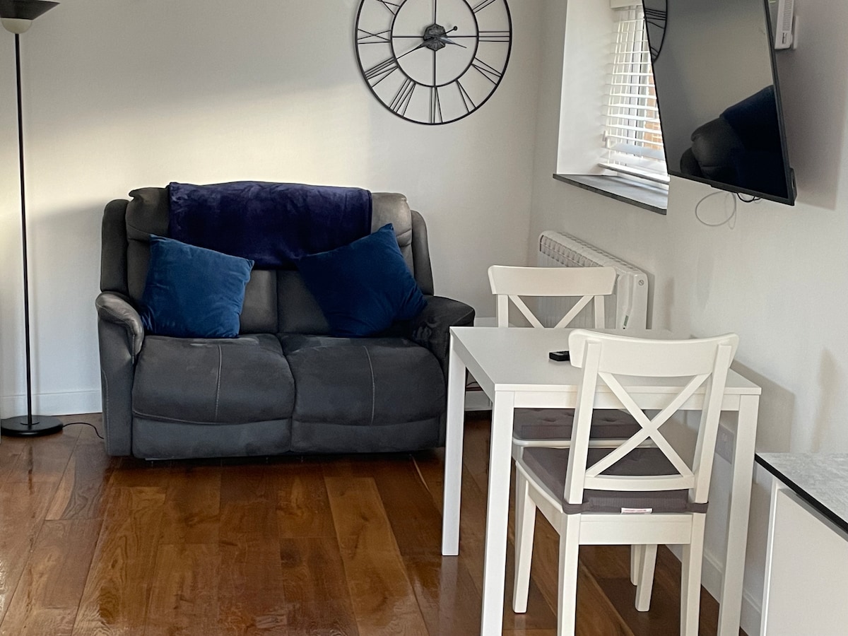 Mayroon kaming maluwang na ground floor suite na may mga tanawin ng dagat na binubuo ng Bedroom, Ensuite, Private Lounge at opsyonal na Hot tub. Ang hot tub ay karagdagang bayarin na £ 90 anuman ang tagal ng pamamalagi. Ang silid - tulugan ay may King Size na higaan na may smart TV, imbakan at ensuite na banyo na may walk in shower. May sofa, smart TV, at mga nakakamanghang tanawin ng dagat ang lounge. Nagbibigay kami ng mga Tea/coffee making facility, microwave, toaster at refrigerator at light breakfast. Paumanhin, walang Bata. Inirerekomenda ng kotse