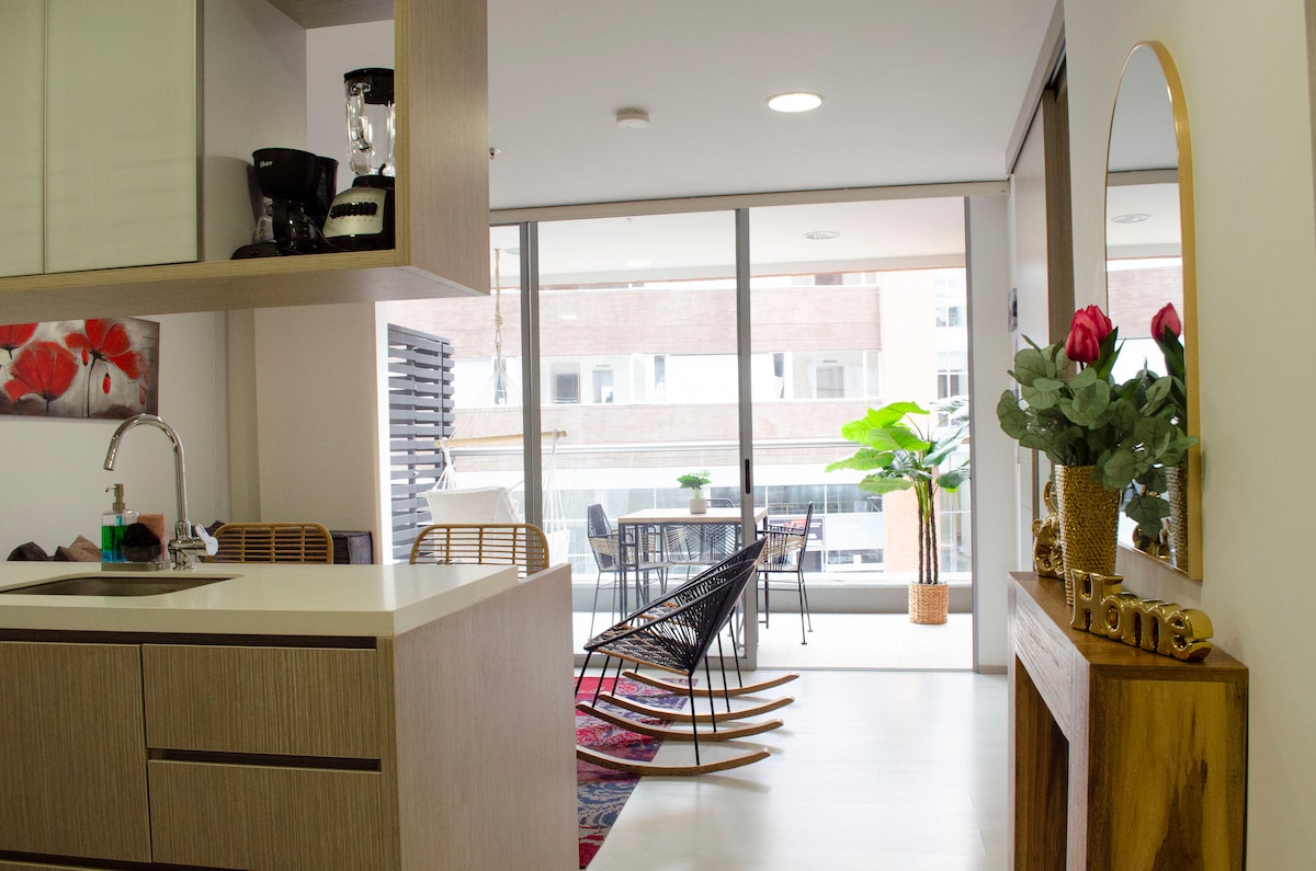4 na minutong lakad ang layo mo mula sa Envigado station, sa labas ng bahay, puwede kang sumakay ng bus o bisikleta, na nagbibigay - daan sa iyong marating ang mga pangunahing lugar sa lungsod. 3 minutong lakad din ang layo mo mula sa VIVA shopping center at 15 minutong biyahe sa bus mula sa Lleras Park. Ang studio apartment ay may closet, smart TV, desk, double bed, napakahusay na ilaw, bentilasyon at balkonahe.