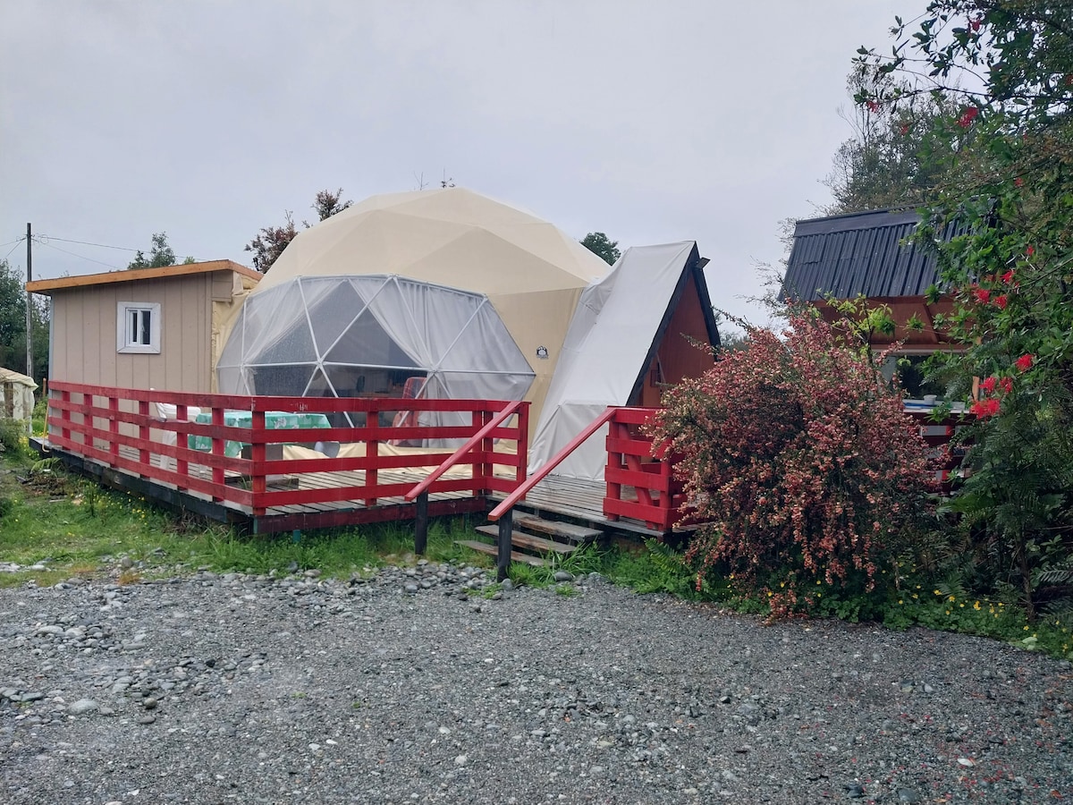 Es un domo geodésico rodeado por distintas especies nativas típicas de la zona (Arrayanes, Notros, Avellanos, Ulmos, entre otros). Esta ubicado en la entrada norte de Quemchi a 1,8 km del centro y a 3 km de la Isla de Aucar. Nuestro domo consta con un ambiente rustico, adornado con artesanía típicas chilota y muebles de mañío. Posee una terraza con vista hacia el humedal de la ciudad. Ahora contamos con una Tinaja para quienes quieran disfrutar de ella, esta tiene costo adicional.
