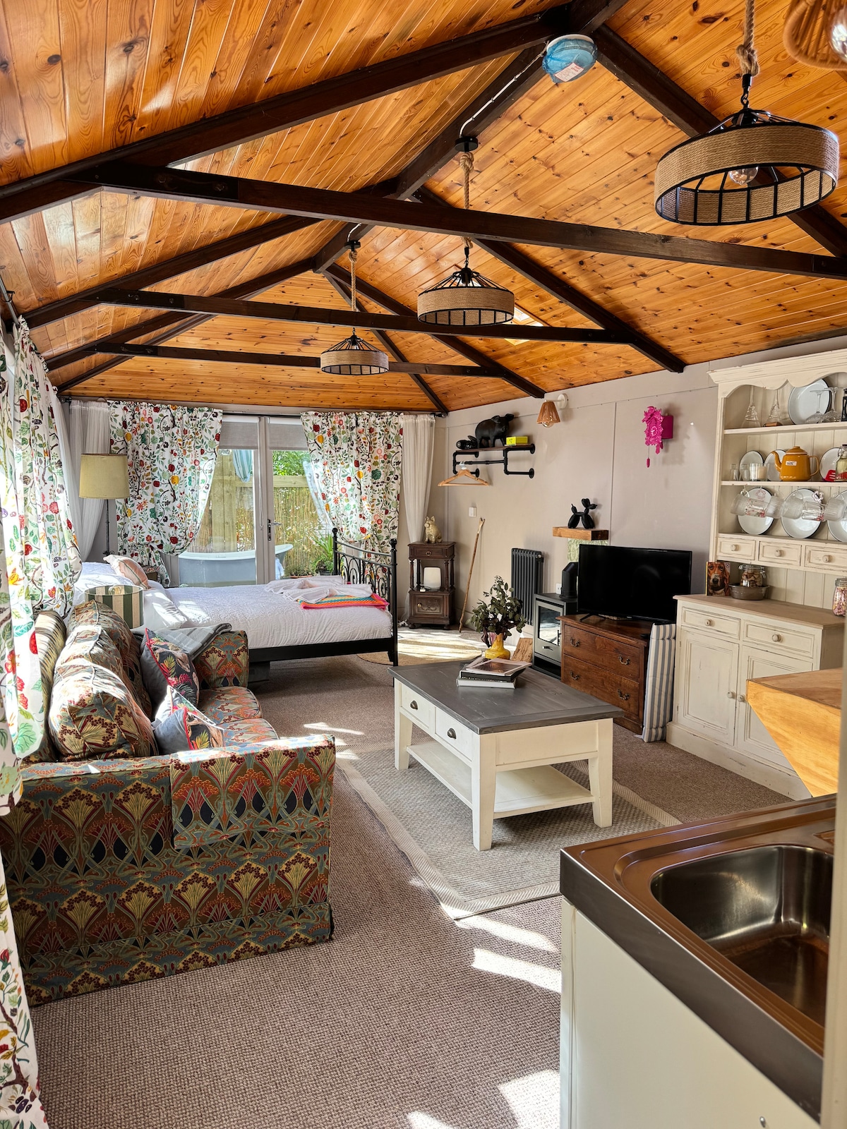 Matatagpuan sa bakuran ng "Caerau Gardens", isang kaakit - akit at hindi pangkaraniwang bolt hole para sa mag - asawa. Gamit ang under - floor heating, isang Sauna at isang buong sistema ng sinehan na may screen at isang nakamamanghang audio system mula sa Monitor Audio. Ang paligid ay kahanga - hanga, mayroon pa kaming lawa para sa pangingisda, paglangoy o marahil kayaking. Paumanhin, walang alagang hayop o bata Kung hindi, ang Hovel? https://abnb.me/E51Vz3SGL9 Kung mayroon kang isang maliit na bata o dalawa o tulad ng isang ekstrang silid - tulugan. Walang sauna kundi wastong hagdan, sinehan at wood burner.