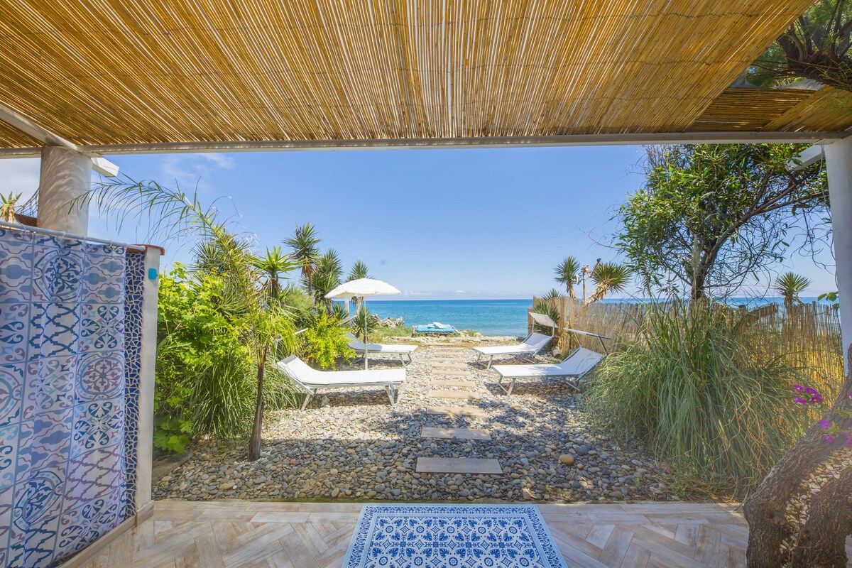 May pinainit na Jacuzzi na 3 metro mula sa beach, para sa eksklusibong paggamit, at direktang access sa beach na may tanawin ng Aeolian Islands. Independent, fenced in, ito ay matatagpuan sa beach ng Costa Rica MASYADONG MALIIT na madalas na MADALAS at sikat para sa kanyang malinaw na tubig. Mainam para sa romantikong bakasyon o para sa 2 may sapat na gulang at 2 bata, o para sa 3 may sapat na gulang, at 1 kuna. LIBRENG PARADAHAN, PAGSINGIL ng de - KURYENTENG KOTSE, sun lounger at upuan, CANOEING, sup board, Ping - Pong table, 3 bisikleta, LIBRENG wifi.