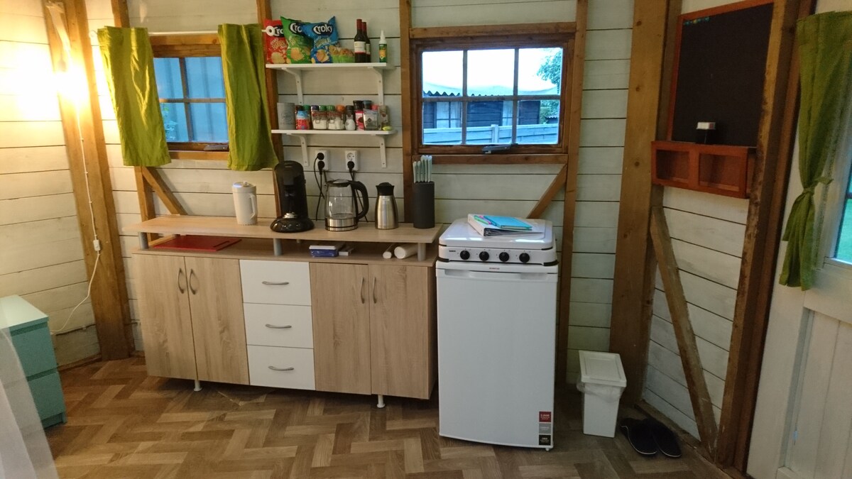 Het Kleine Huuske is een klein maar compleet huisje bij ons in de tuin. Je slaapt in een knusse bedstee en wordt 's ochtends wakker met vogelgezang. Het huisje beschikt over een klein keukentje dat is ingericht met een inductieplaat en een kleine oven voor bijvoorbeeld het afbakken van broodjes in de ochtend. Er is gratis wifi, en een tv met chromecast zodat je je eigen series kan kijken. Buiten is er een terrasje met twee stoelen, een tafeltje en eventueel een vuurkorf.