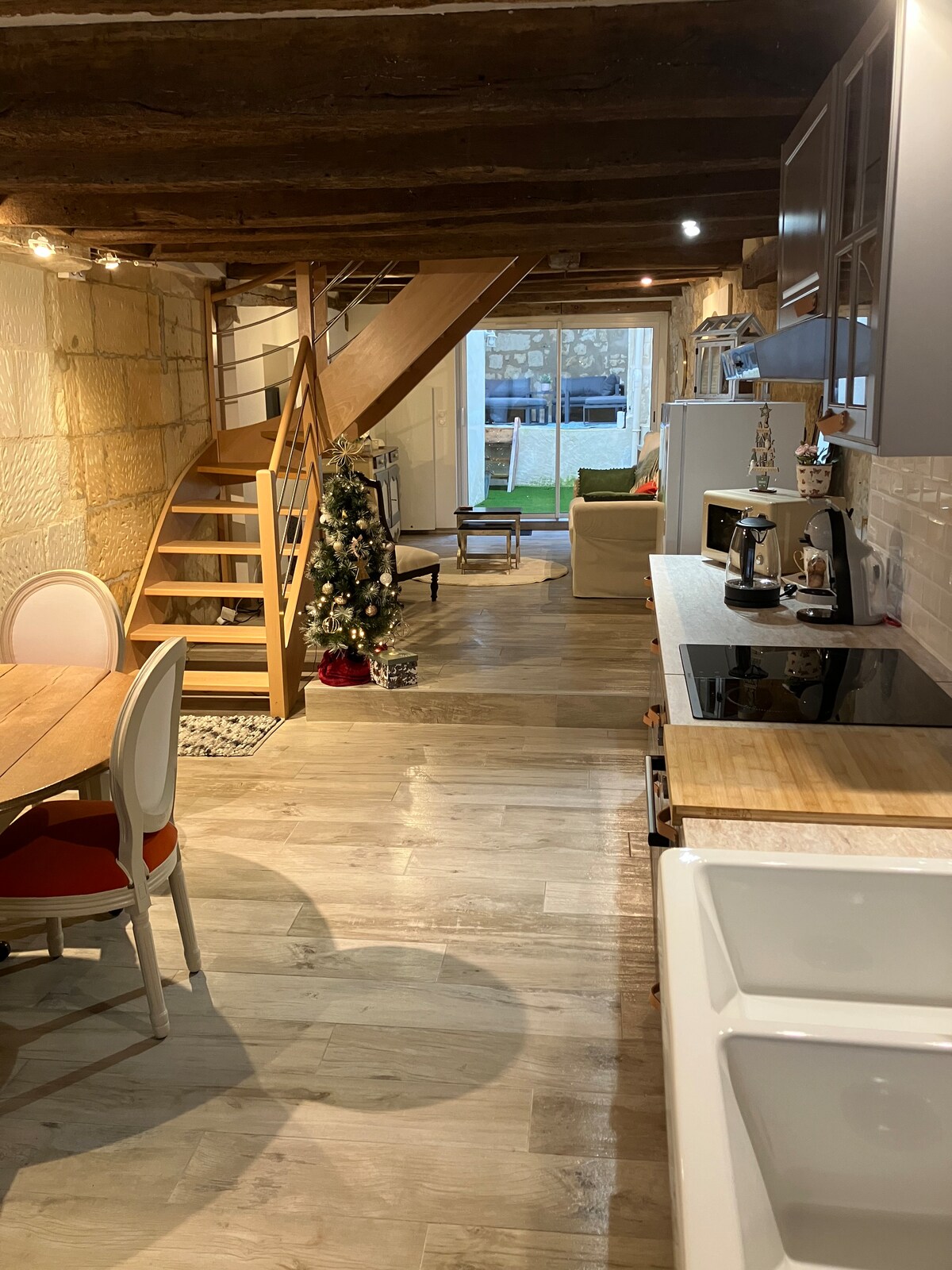 Isang natatangi at romantikong bakasyunan sa gitna ng Amboise ,sa mga pampang ng Loire ,isang hindi pangkaraniwan at awtentikong tuluyan (inukit sa bato noong ika -16 na siglo ) na may dekorasyon ng disenyo at modernong kagamitan. Sa loft spirit sa iba 't ibang antas: Ang banyo at ang balneo/JACUZZI nito para sa maximum na pagrerelaks para sa 2 . Nilagyan ang sala ng 65 pulgadang smart TV at soundbar. Ang lugar ng pagtulog at ang designer bed nito para sa komportableng gabi at sa wakas ang dining area.