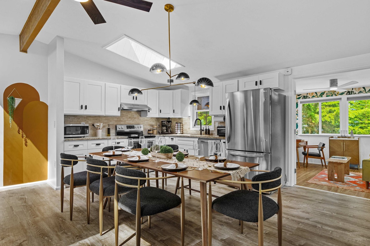 Ang family oriented, pet friendly rental property na ito sa Locust Lake Village ay may lahat ng kailangan mo. 3 Kuwarto 2 Paliguan at 6 na tao ang komportableng natutulog. Maginhawang chalet na may magandang living at dining space. Magandang bakuran na may hot tub, mga laro sa labas at fire pit! Ganap na nakabakod ang bakuran. Flat TV sa lahat ng kuwarto na may Hulu at Netflix. Apat na panahon ng kuwarto para sa lahat ng taon entertainment at magandang laki deck. Ang lahat ng ito sa isang amentity na puno ng komunidad na may 3 lawa, beach, tennis court, clubhouse, at 3 ski slope
